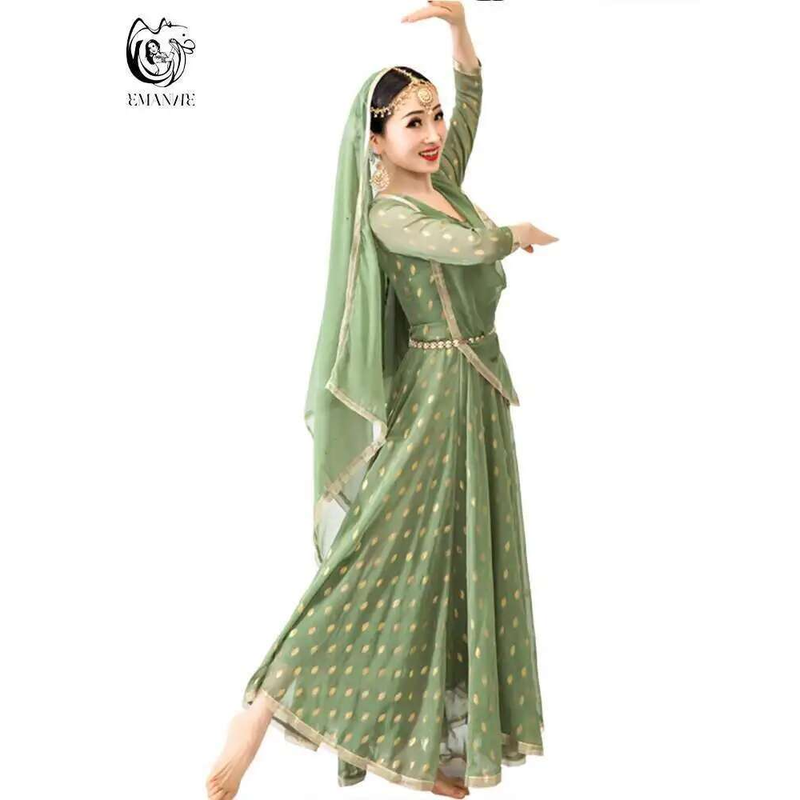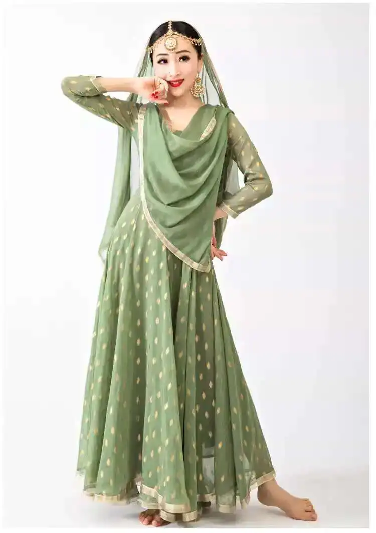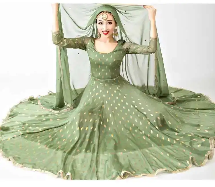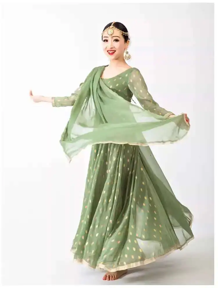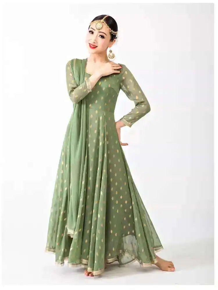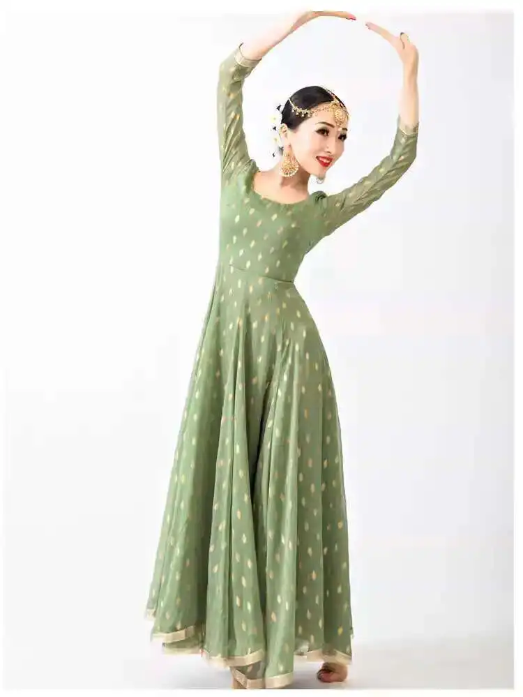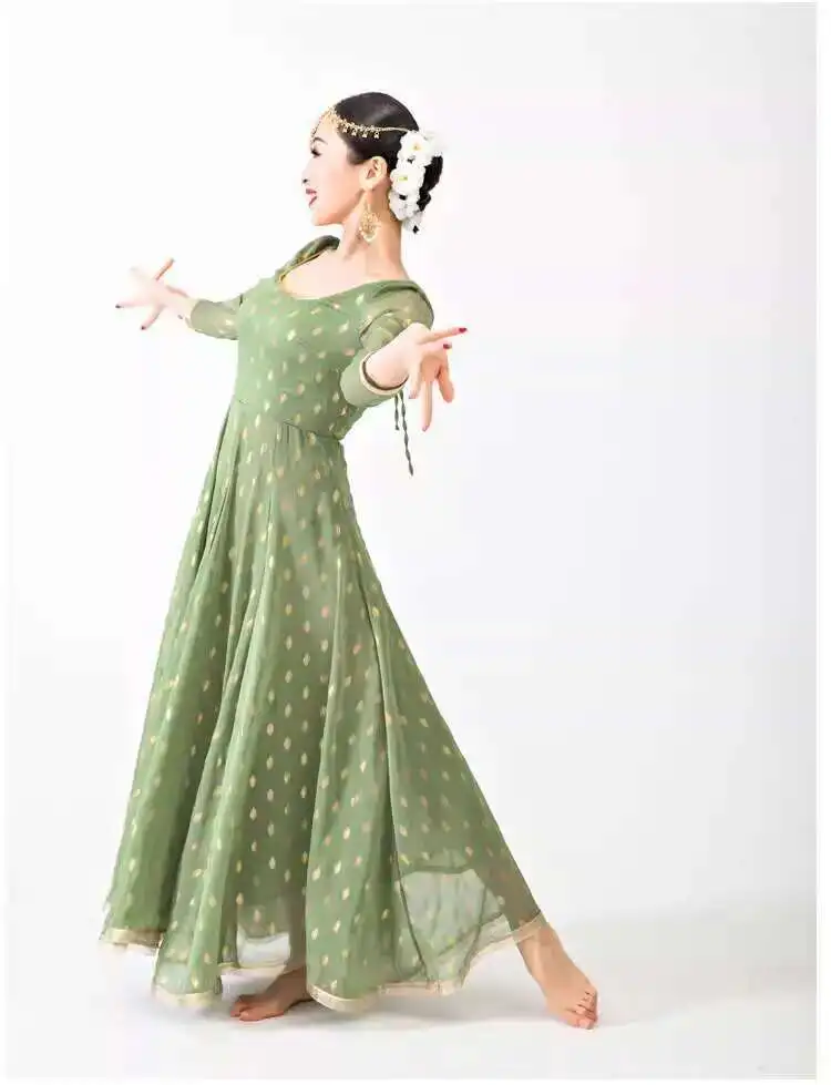 Indian Apparel Sari Anna Grand Swing Dress Silk Crepe Gold Plated Empire Double Wall Dance Performance Practice Dress Female