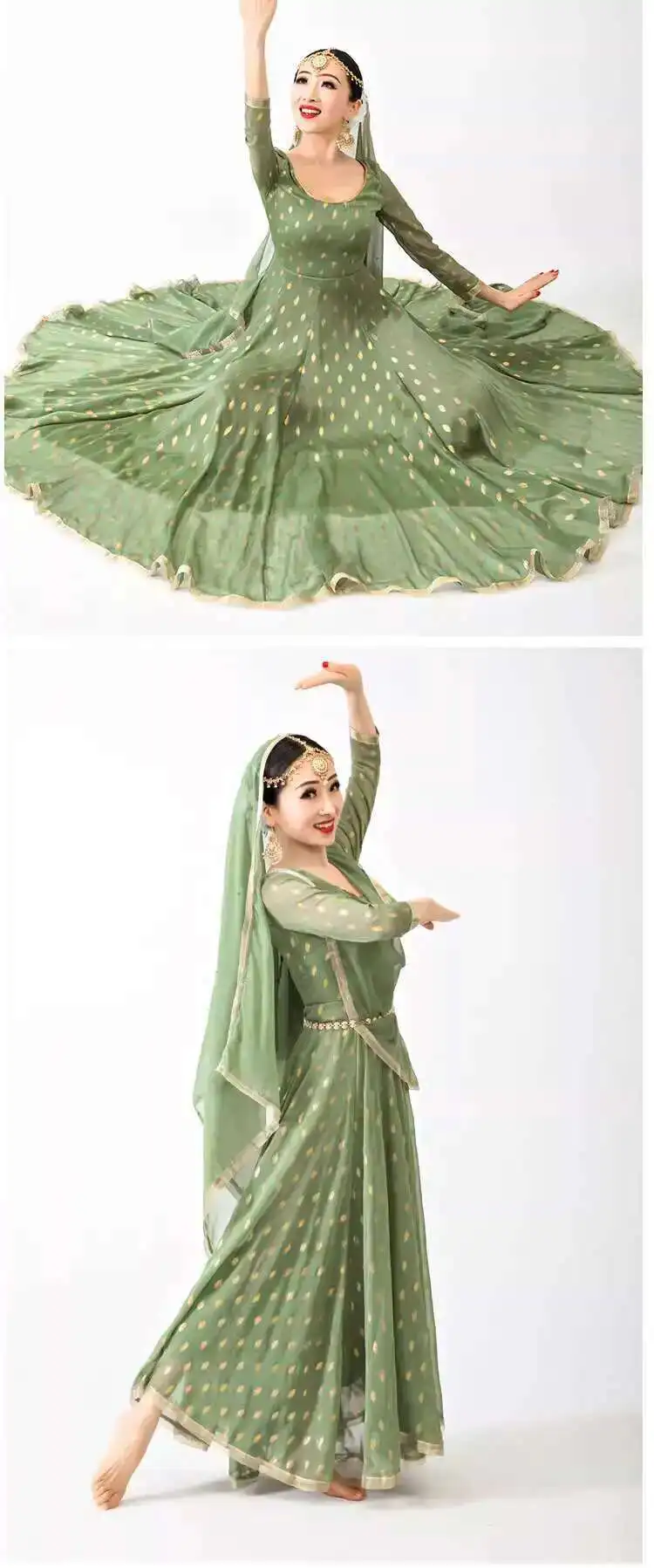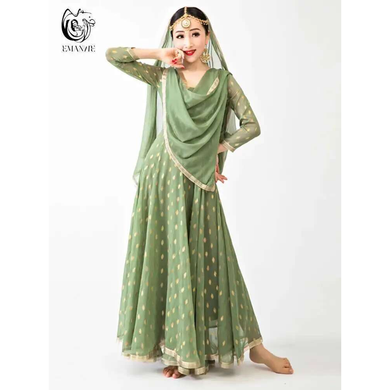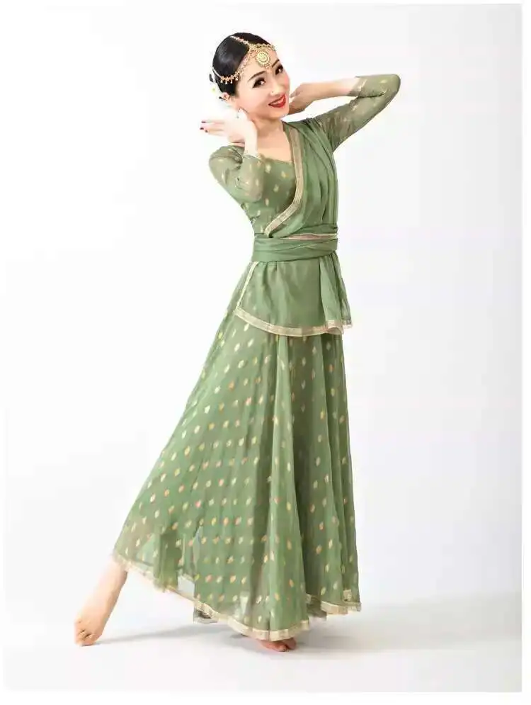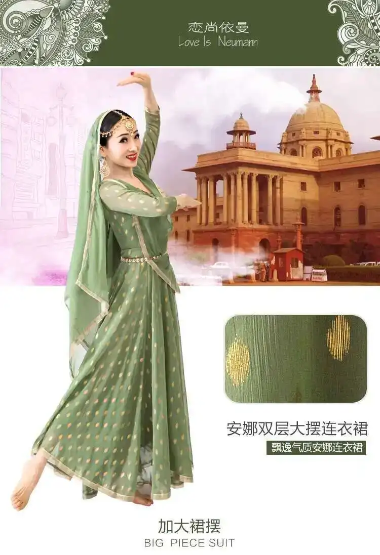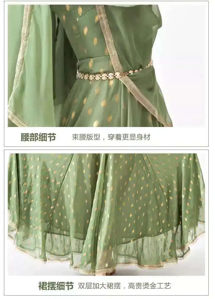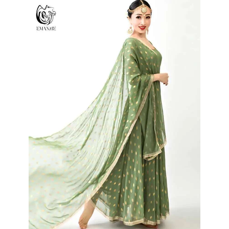 Indian Apparel Sari Anna Grand Swing Dress Silk Crepe Gold Plated Empire Double Wall Dance Performance Practice Dress Female