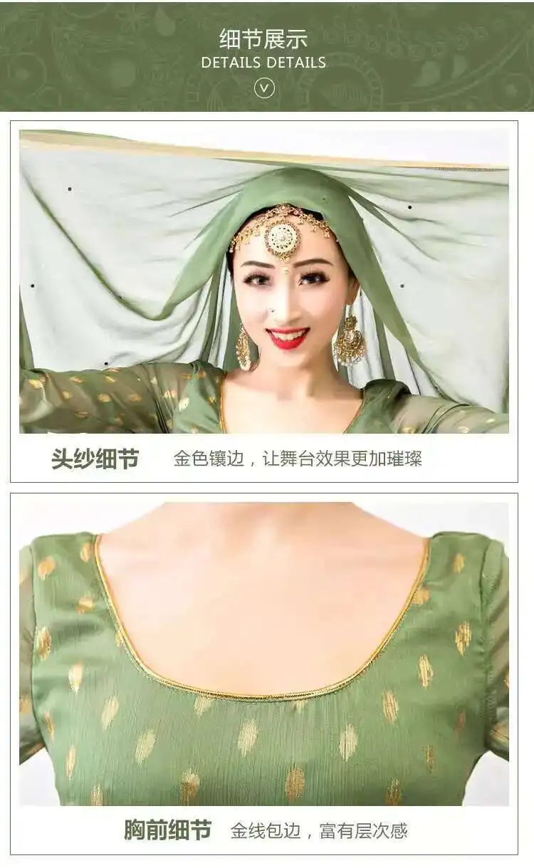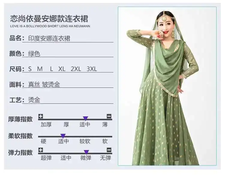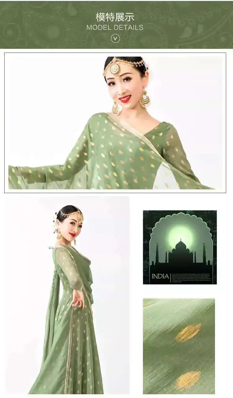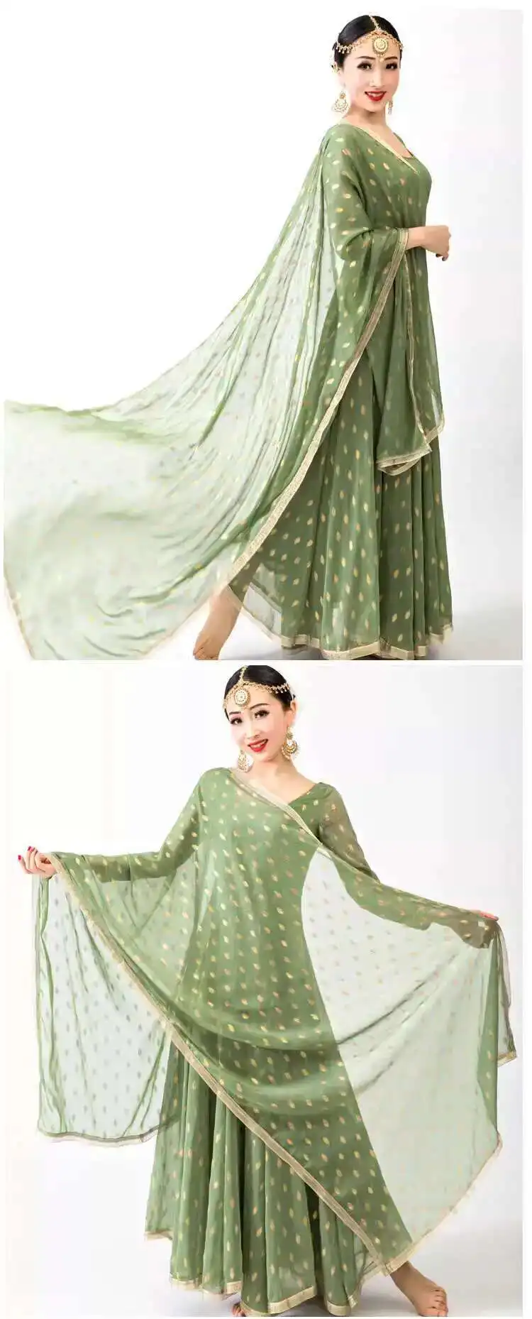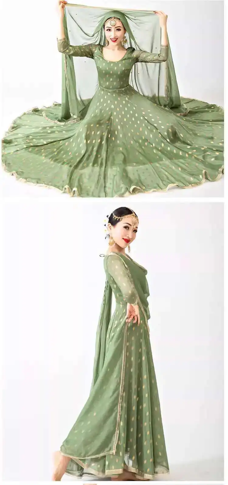 Indian Apparel Sari Anna Grand Swing Dress Silk Crepe Gold Plated Empire Double Wall Dance Performance Practice Dress Female