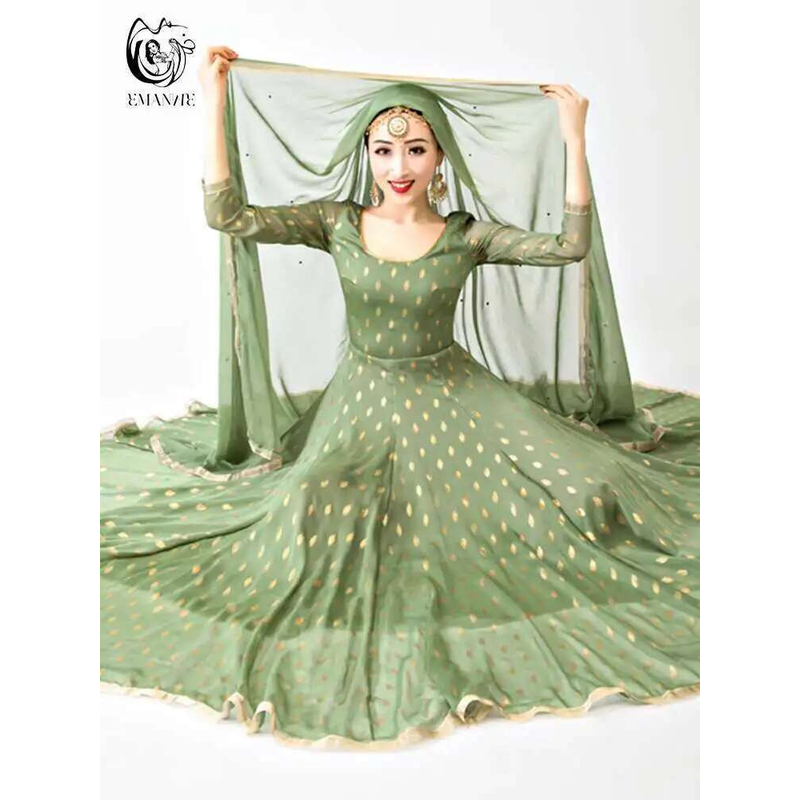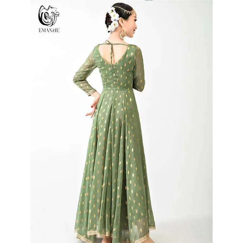 Indian Apparel Sari Anna Grand Swing Dress Silk Crepe Gold Plated Empire Double Wall Dance Performance Practice Dress Female