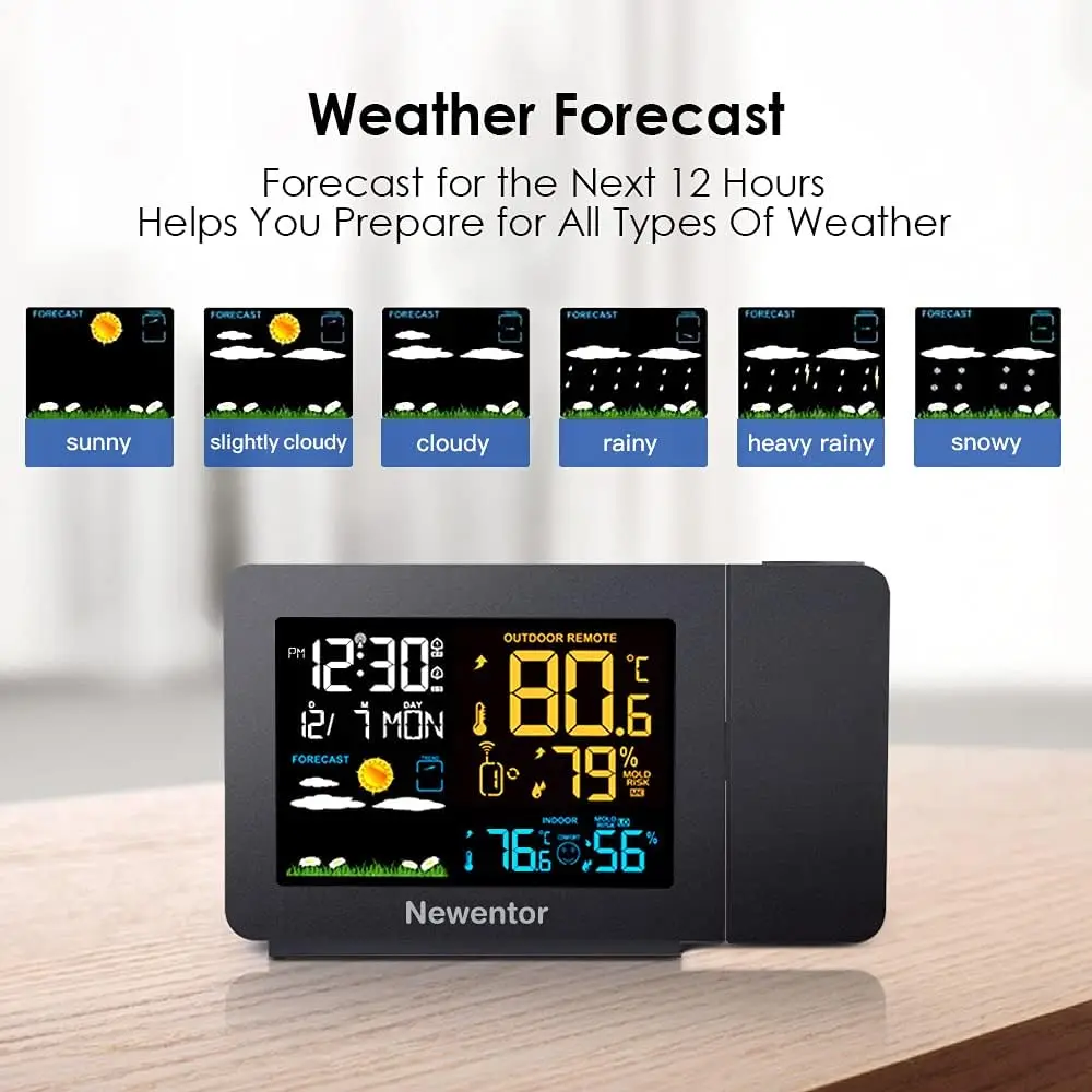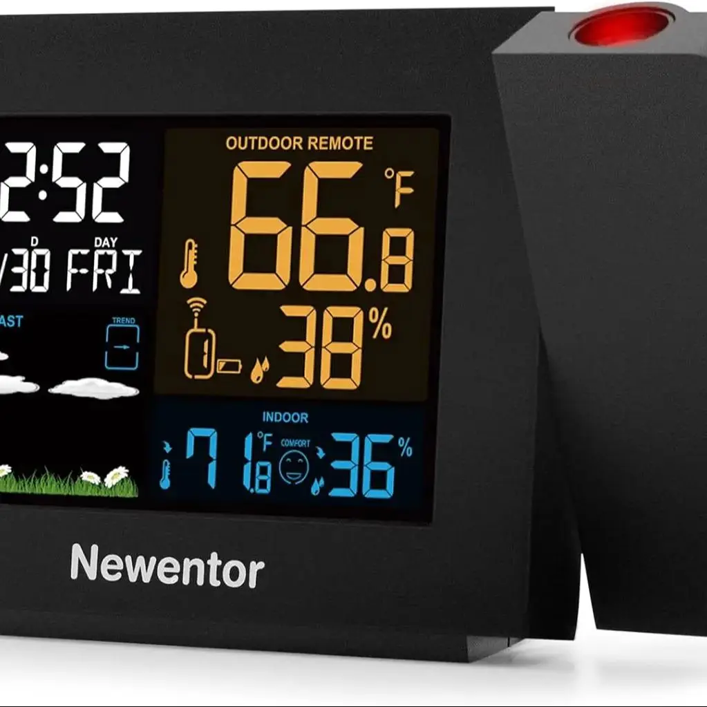 Indoor Outdoor Temperature Humidity Meter | Multi-function Projection Alarm Clock | Weather Clock Color Screen Weather Forecast