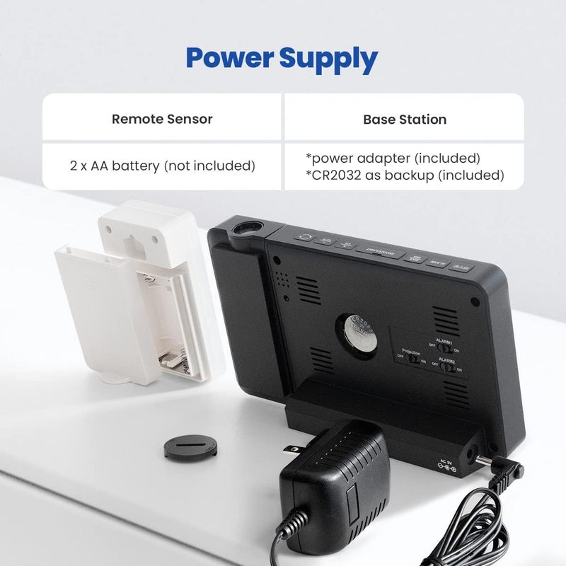 【Projection alarm design】The unique projection design allows you to clearly see time and temperature and humidity information without turning over, which is very convenient. At the same time, the projection angle and brightness can be adjusted to meet different needs.