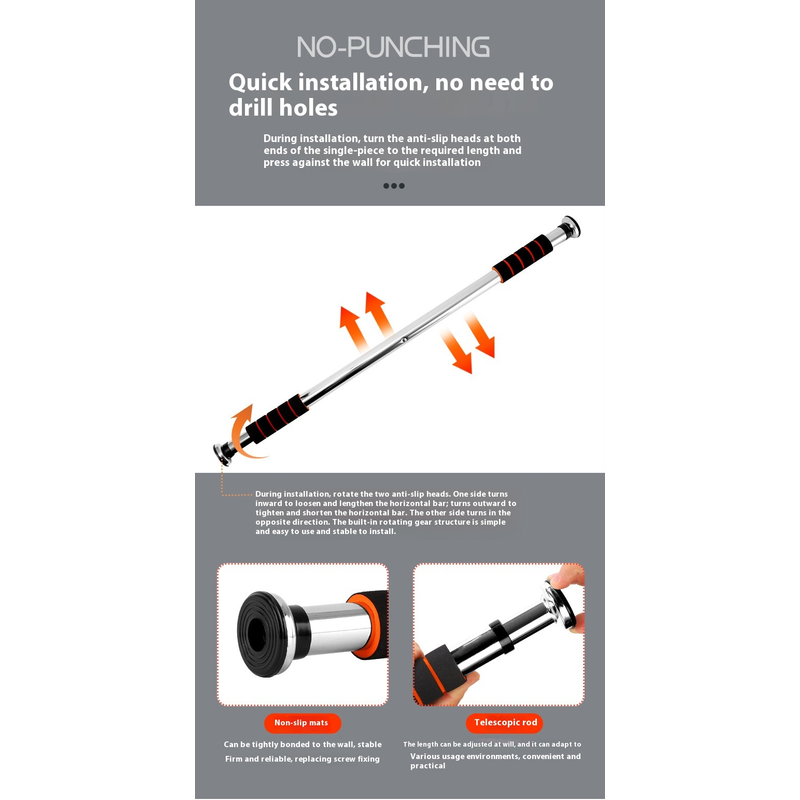 Indoor Punch-free Horizontal Bar On The Door Pull-up Fitness Equipment Black 60to100cm Ordinary