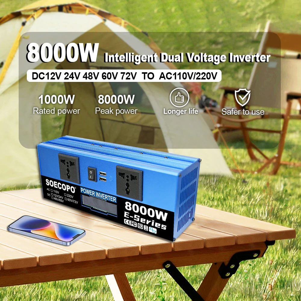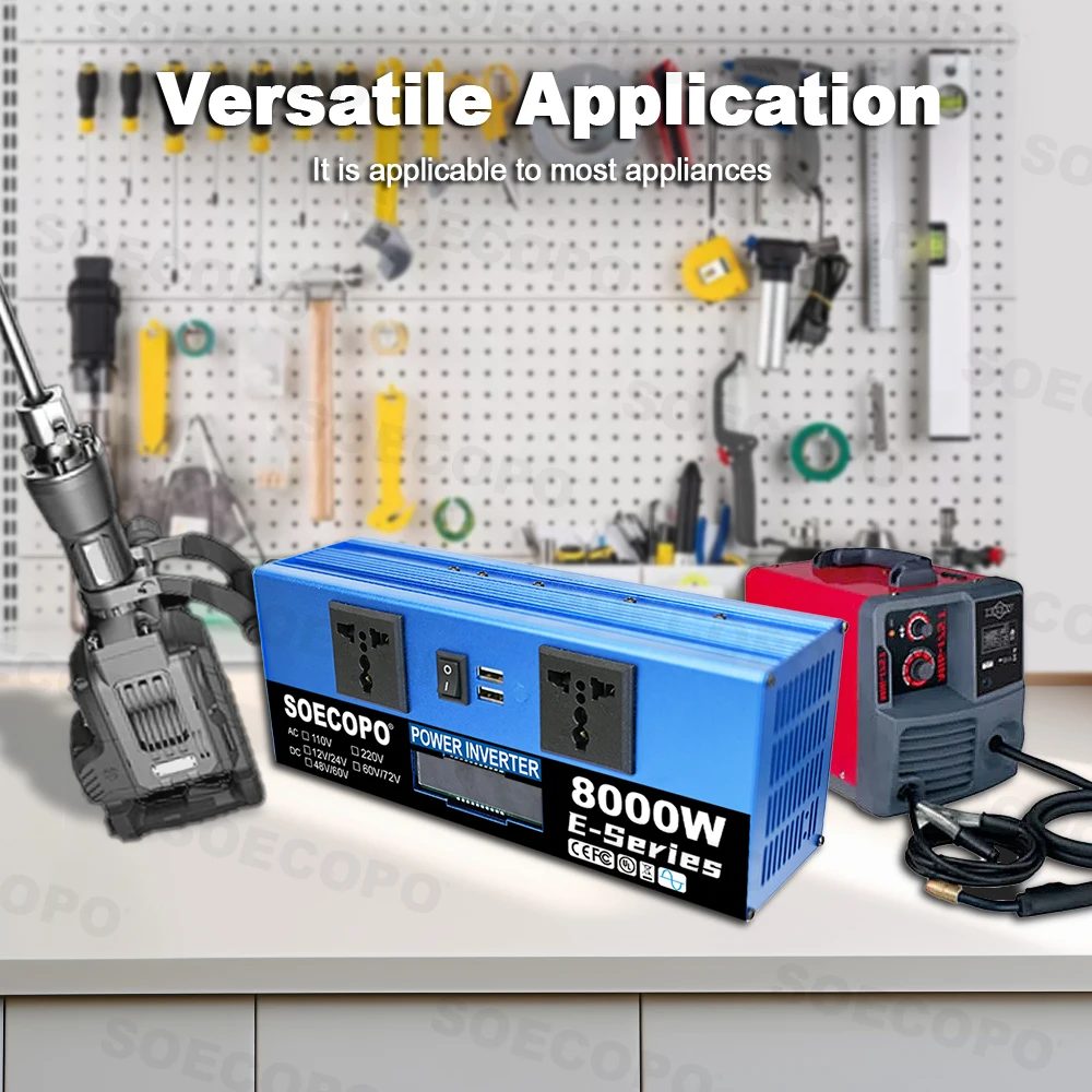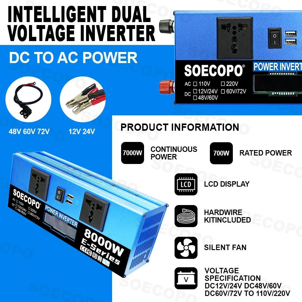 Industrial 10000W Inverter DualVoltage Inverter 12V24V48V60V72V to 110V/220V AC with LCD Screen&Dual USB for Outdoor Adventures