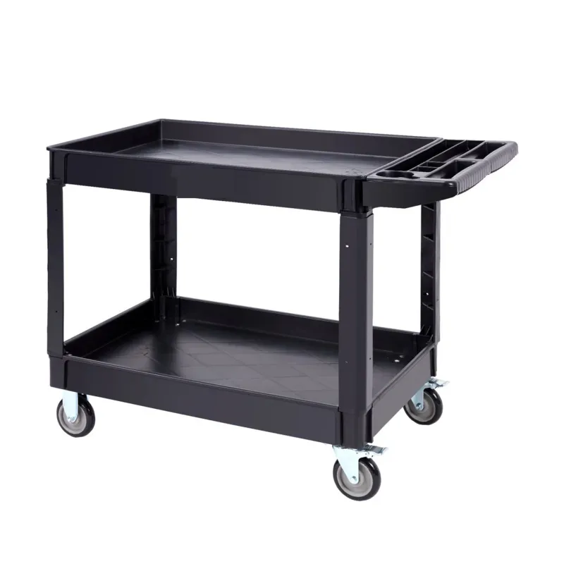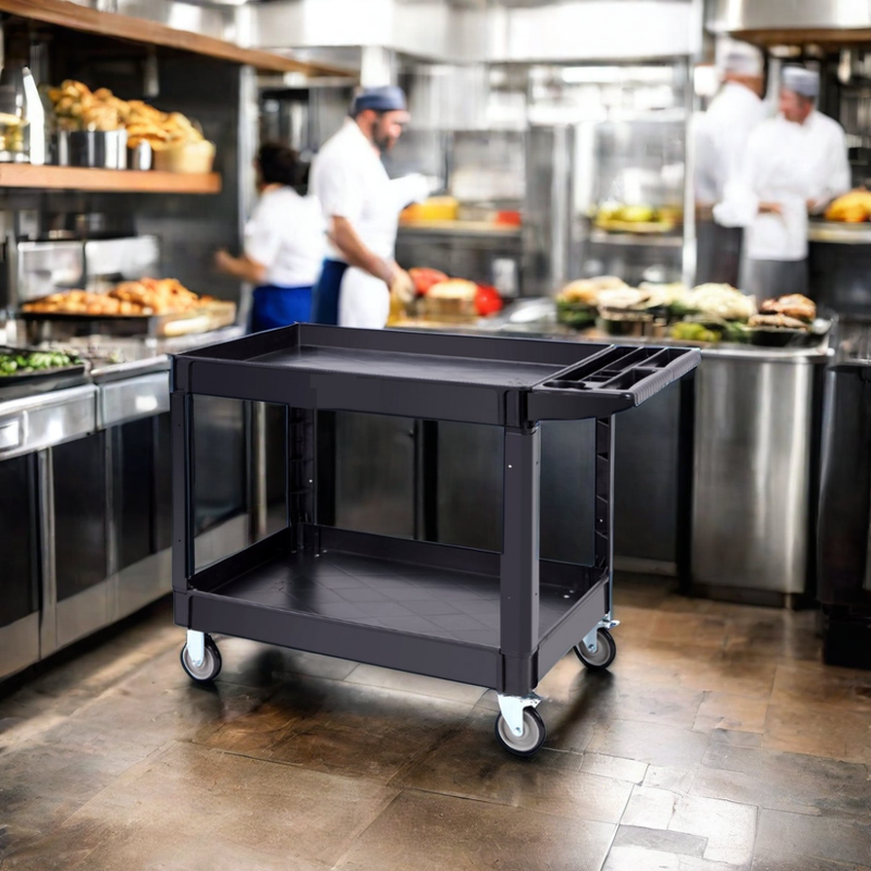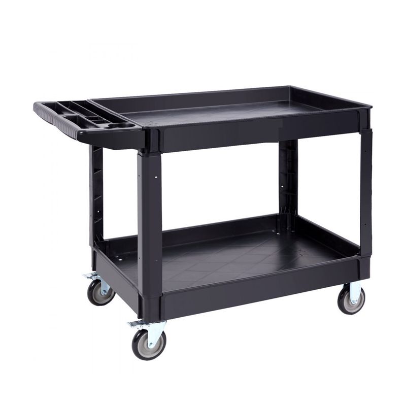 Black Two Shelf Utility Cart with Handle