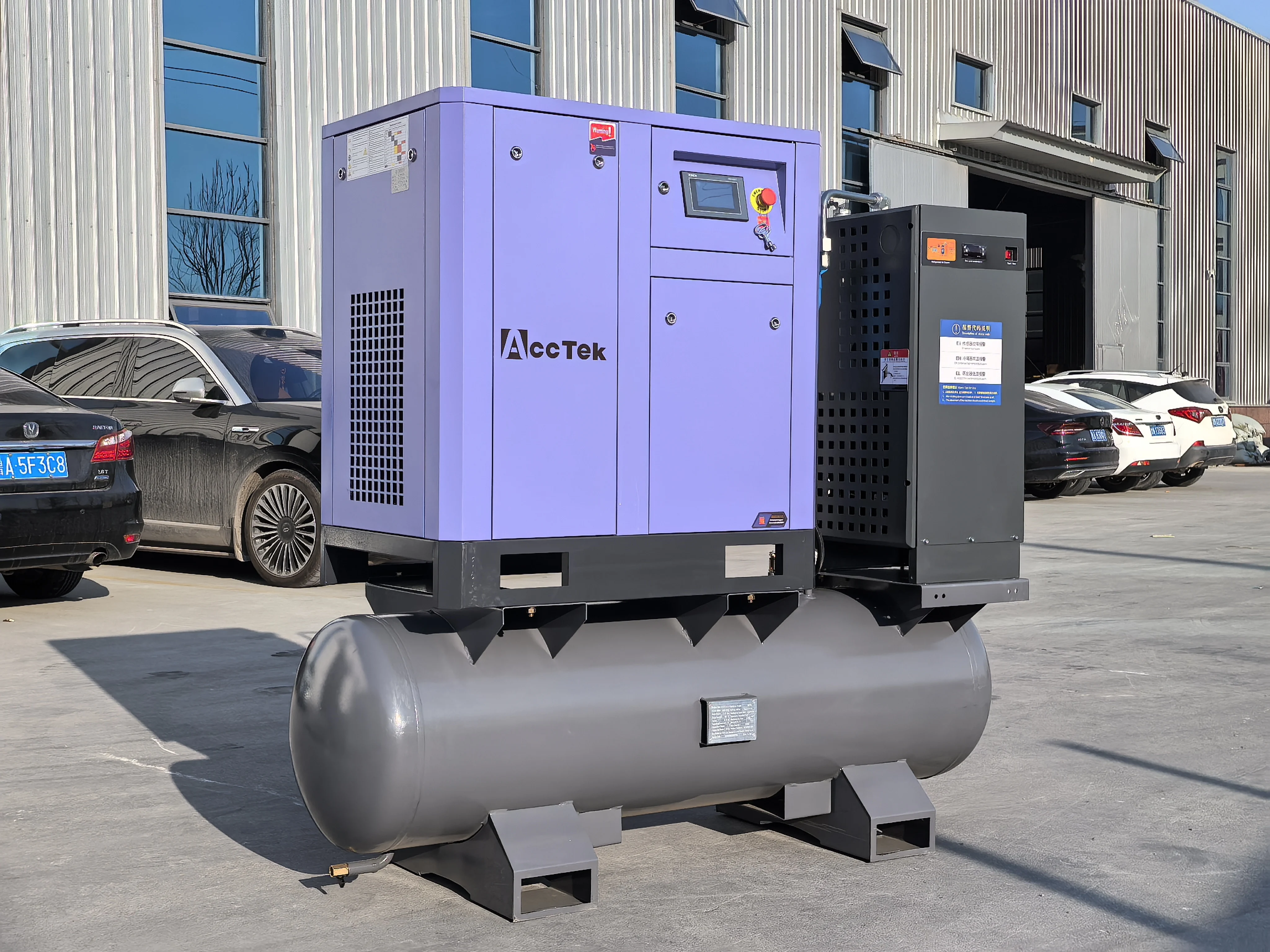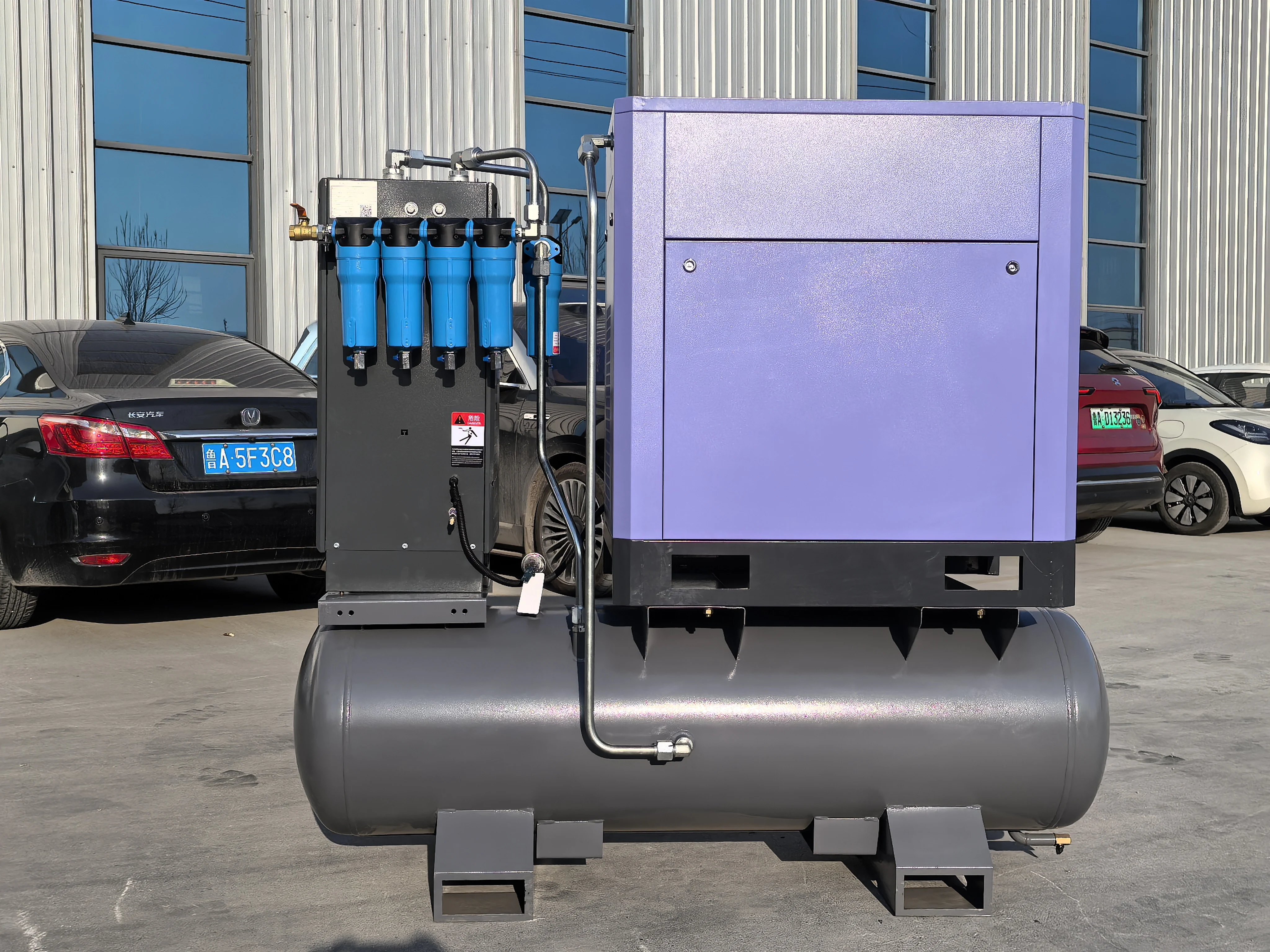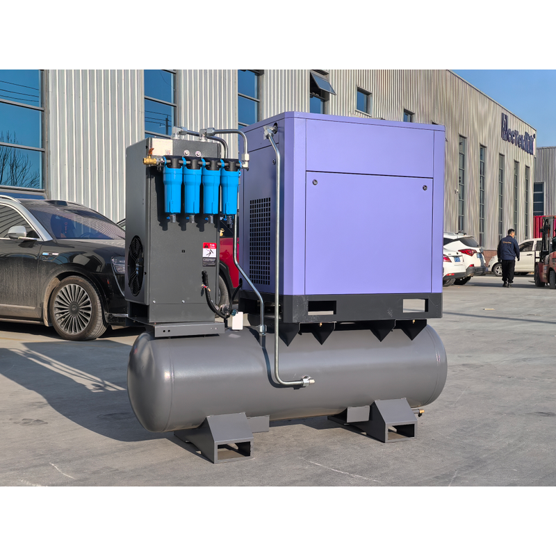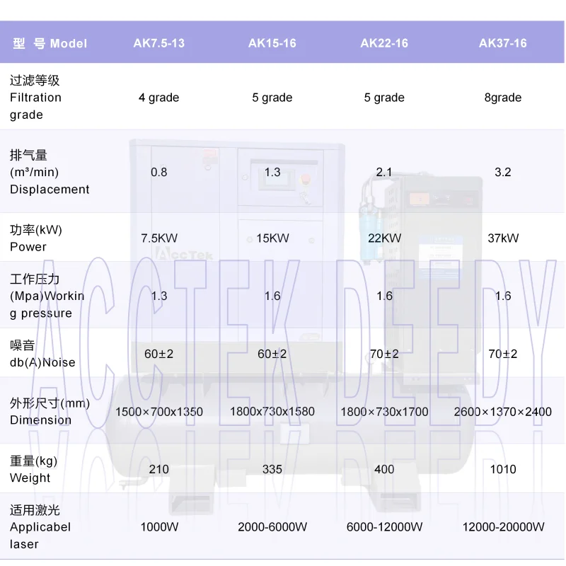 This differs from the traditional split configuration of "air compressor + separate air receiver tank + separate dryer + separate piping." Its advantages perfectly align with the workshop usage scenarios and process requirements of laser cutting.