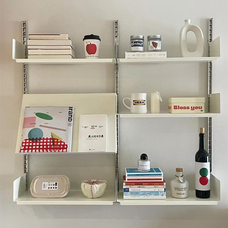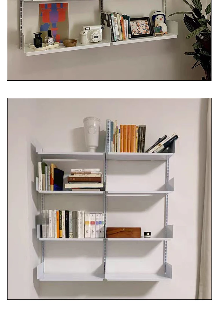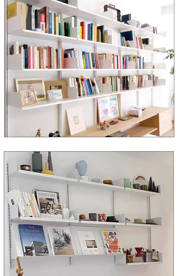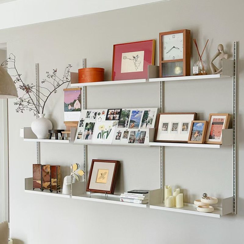 Industrial Iron Storage Shelf Modern Wall Mounted Rail Bookcase Multi-layer Living Room Display Rack Modular Floating Shelves
