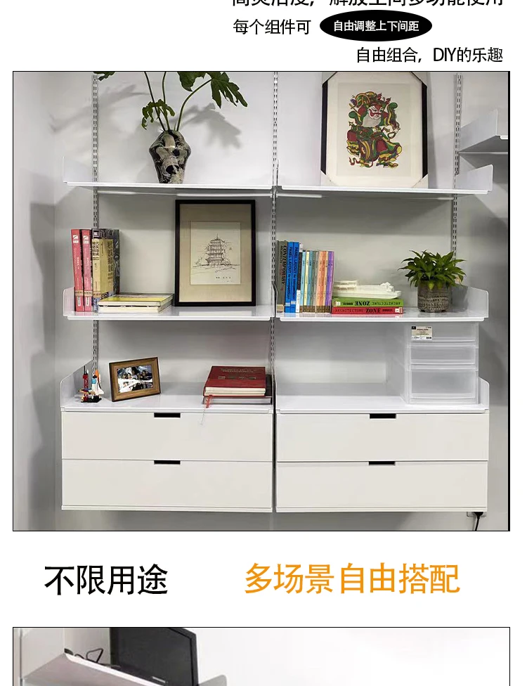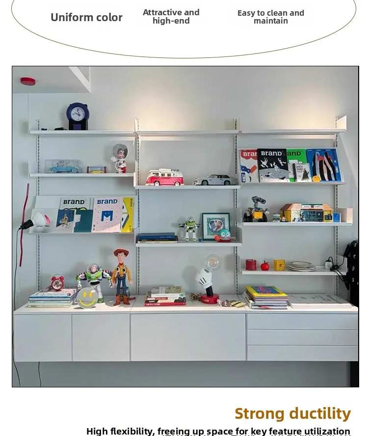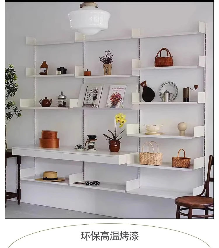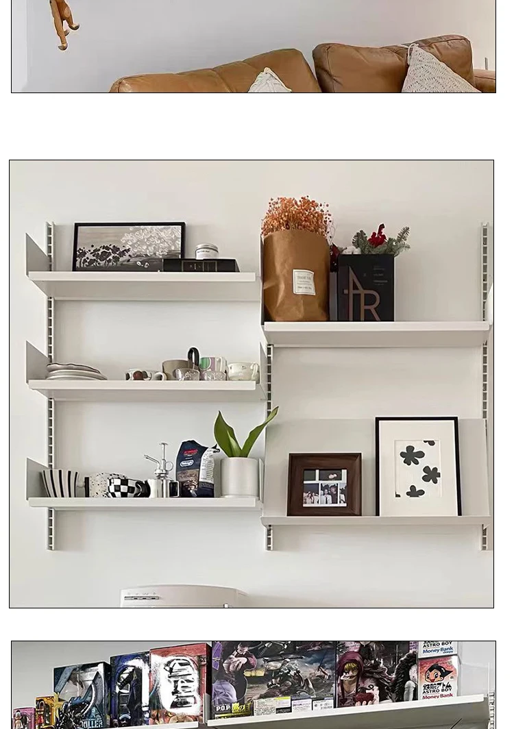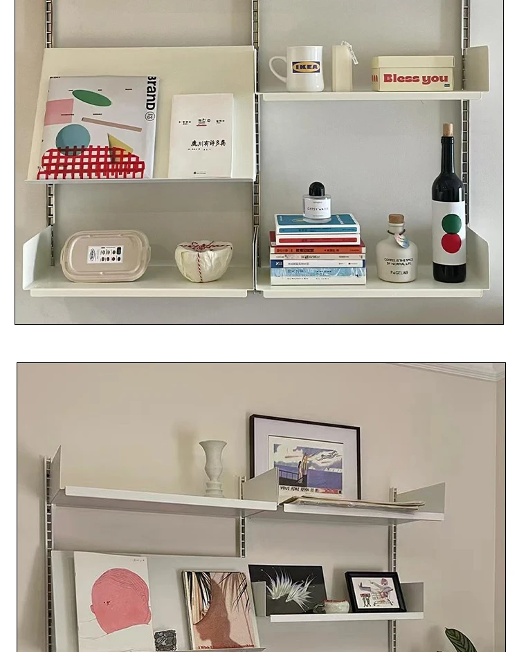 Industrial Iron Storage Shelf Modern Wall Mounted Rail Bookcase Multi-layer Living Room Display Rack Modular Floating Shelves