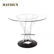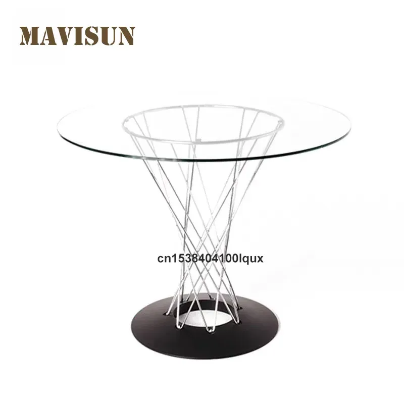 Industrial Style Metal Round Transparent Tempered Glass Or Solid Wood Tabletop Electroplated Steel Frame 0.8 meters Dining Table