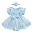 Baby girl summer romper, baby girl romper dress, round neck, 3d flower, mesh lace patchwork, ruffle design, and cute hairband set, your little one wearing it will receive a lot of compliments.