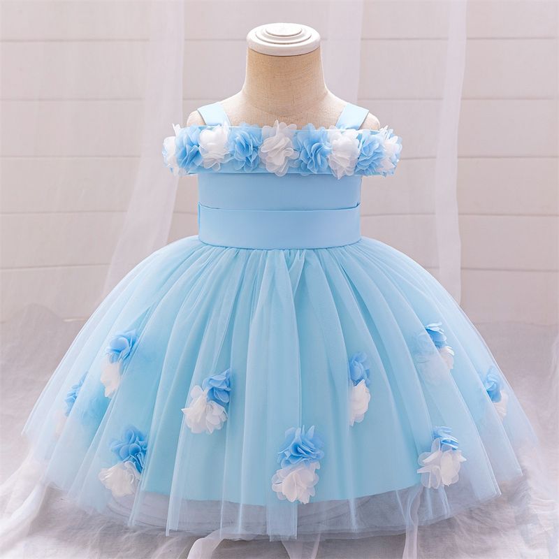 Infant Blue Maid Flash Wedding Dress Baby Girl Butterfly Party Gown Princess Dresses Toddler Flower Fluffy Clothes Girls NewWear