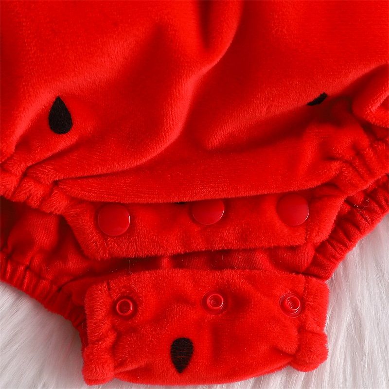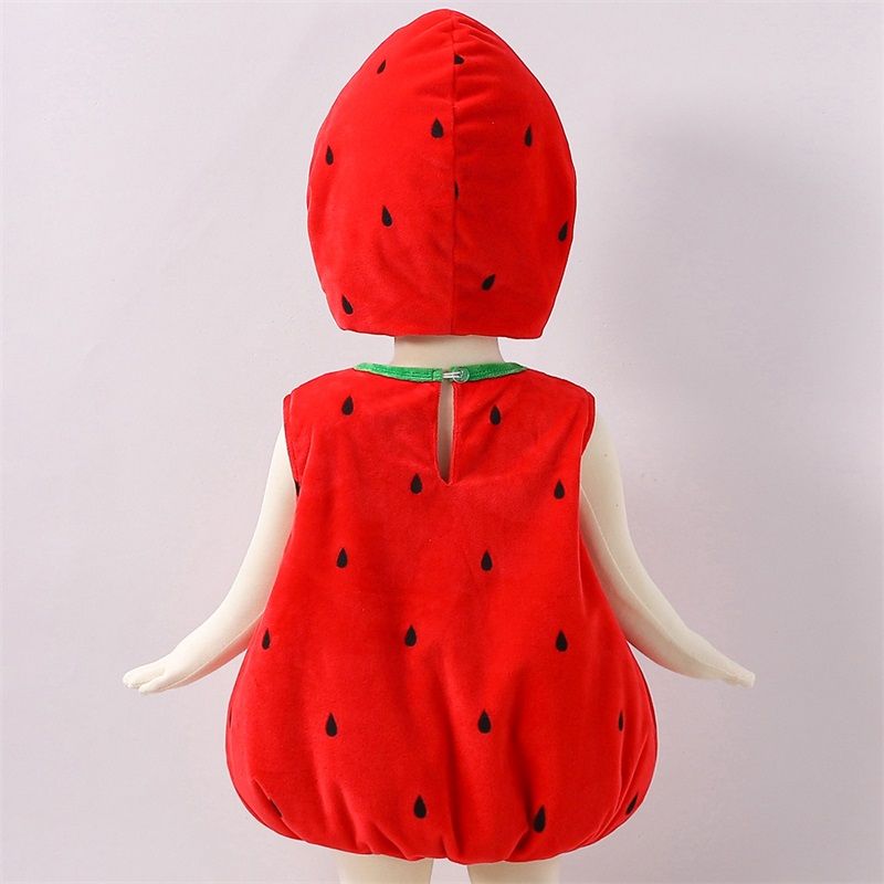 Baby Boy Girl Strawberry Costume Set, Fleece Leaf Trim Sleeveless Strawberry Romper Hat Halloween Cosplay Clothes