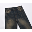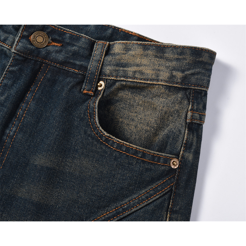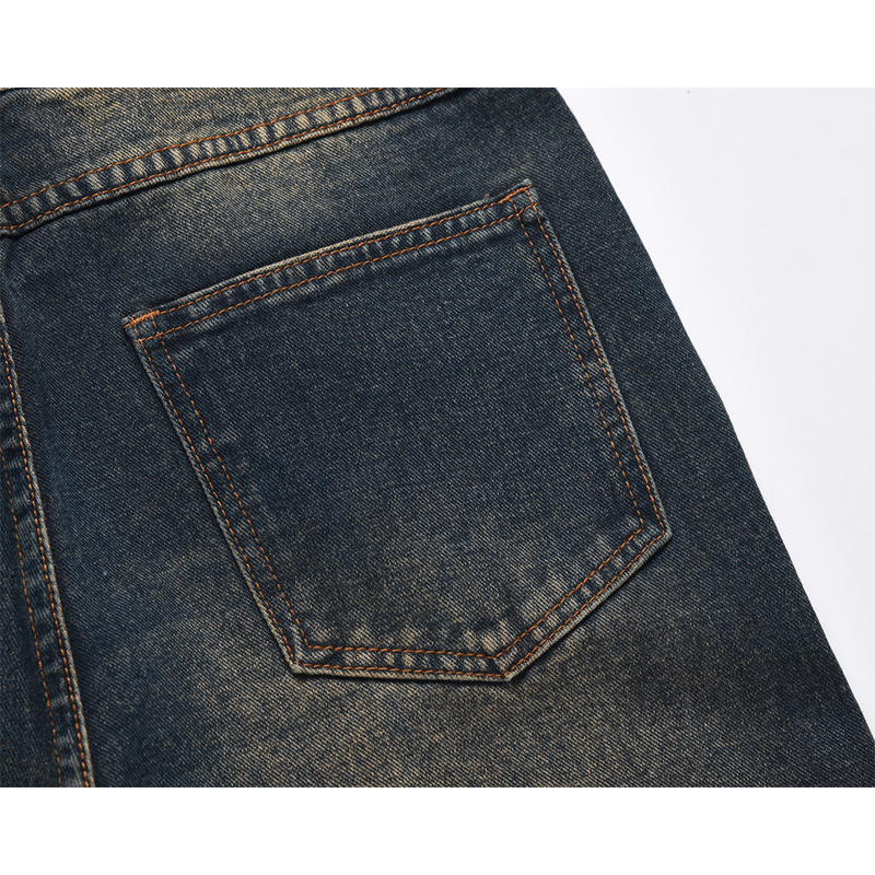 Inkjet Denim Straight-leg Trousers Men Dark Blue S