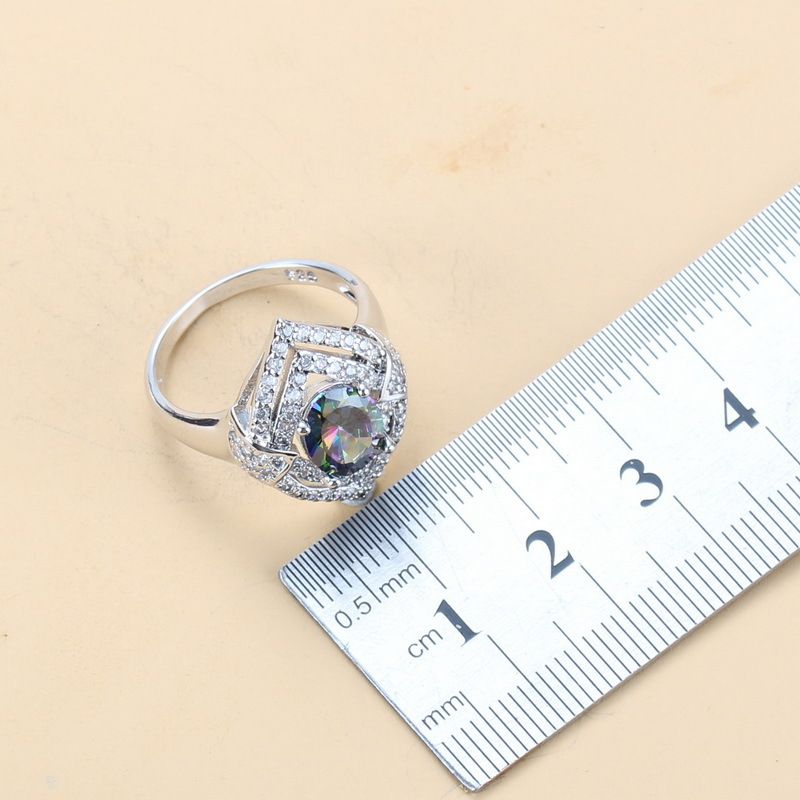 Inlaid Gemstone Pendant Earrings Necklace And Ring For Women 4 PCs Set Sea Blue No 10