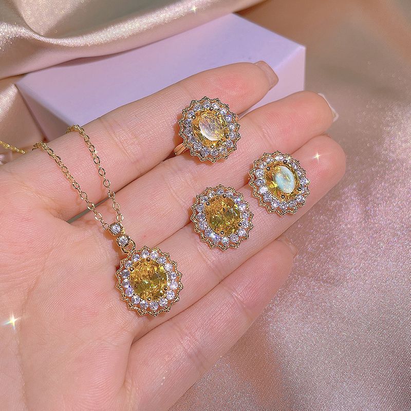 Inlaid With Yellow Diamond Rings Pendants Ear Stud Necklace Ring