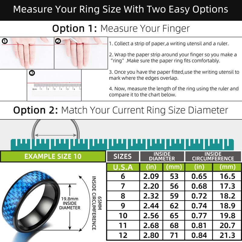 【 Ring Size 】Sizes determined according to American standards: 6 #, 7 #, 8 #, 9 #, 10 #, 11 #, 12 #. Allowing you more choices without worrying about not having a ring that fits your size.