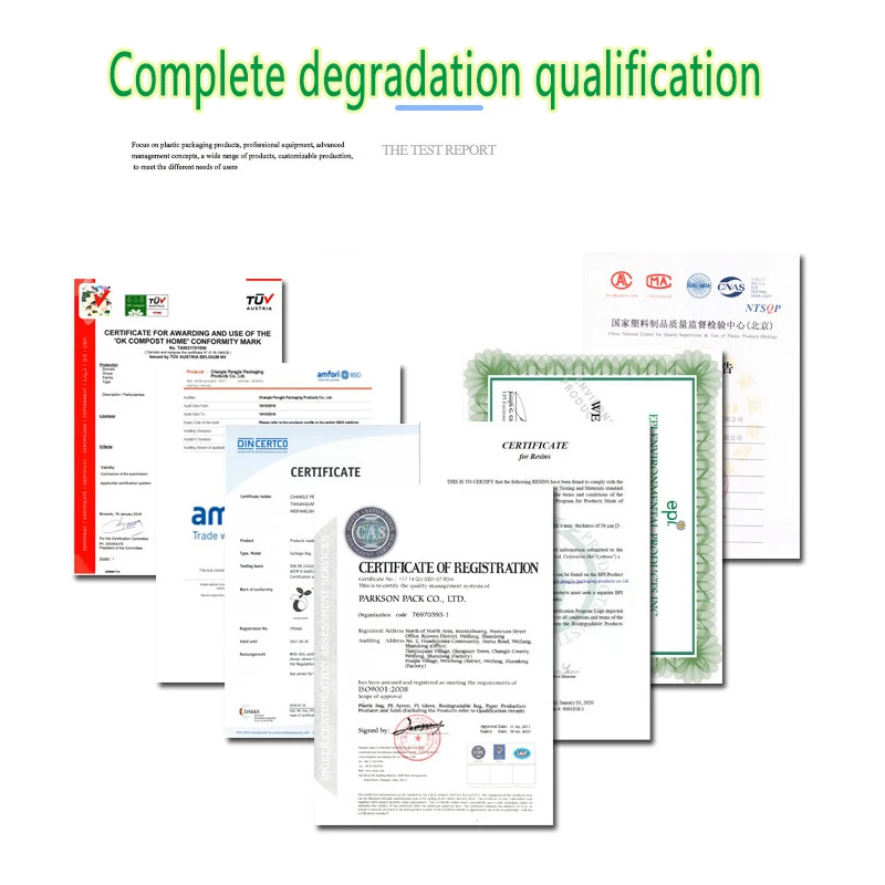 Fully biodegradable express bags can be completely degraded in a natural environment within 12-24 months, and in a humid environment within 6-8 months. Degraded into carbon dioxide, water and organic matter under certain natural environment. No pollution