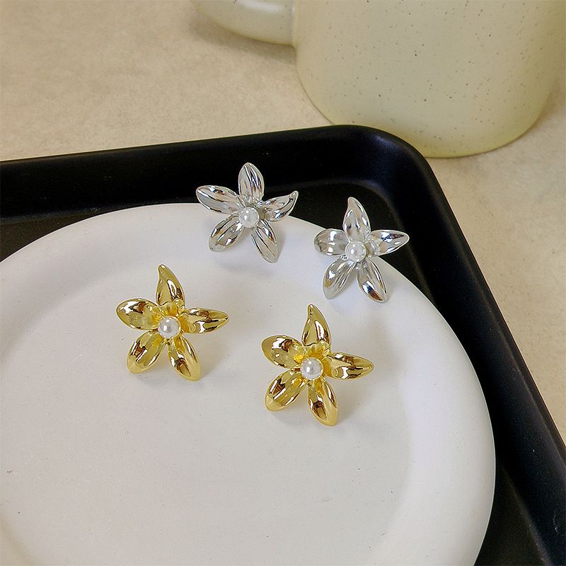 INS Light Luxury Pearl Flower Earrings Silver Pearl Flower Earrings