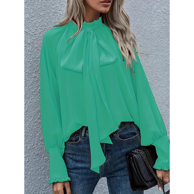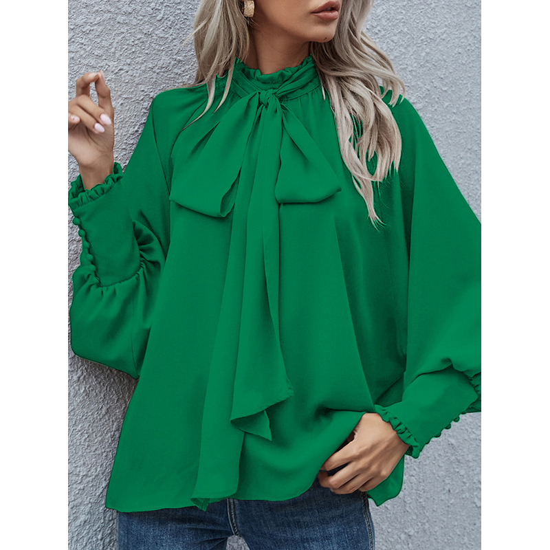 Ins Long-sleeved Blouse Bowknot Puff Sleeves Fashion Commuter Office Tops Women's Clothing Black XL