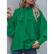 Ins Long-sleeved Blouse Bowknot Puff Sleeves Fashion Commuter Office Tops Women's Clothing Green M
