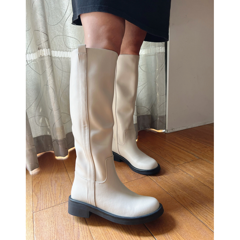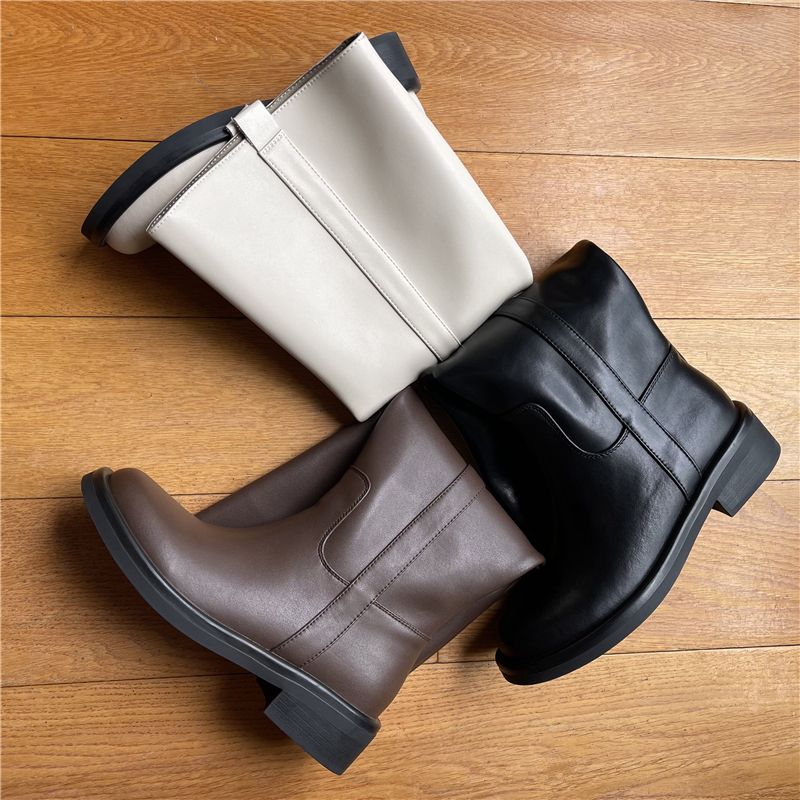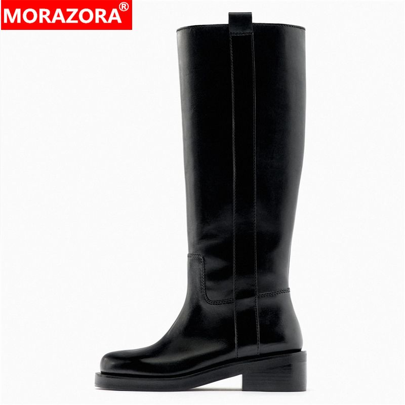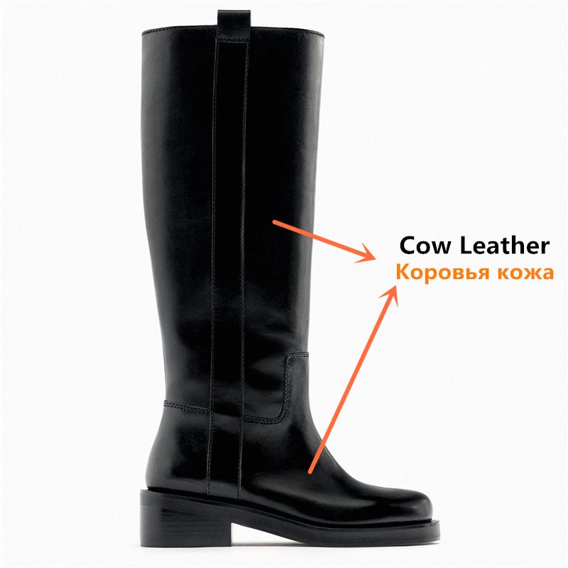 INS Plus Size 34-43 New Fashion Full Genuine Leather Boots Women Slip On Knee High Boots Autumn Winter Straight Knight Botas