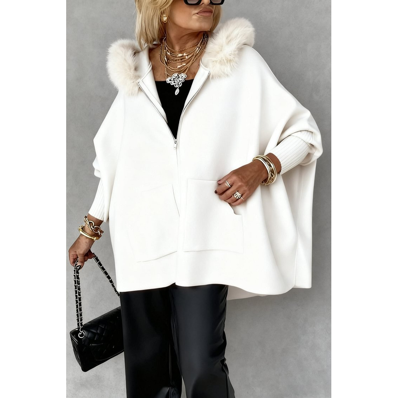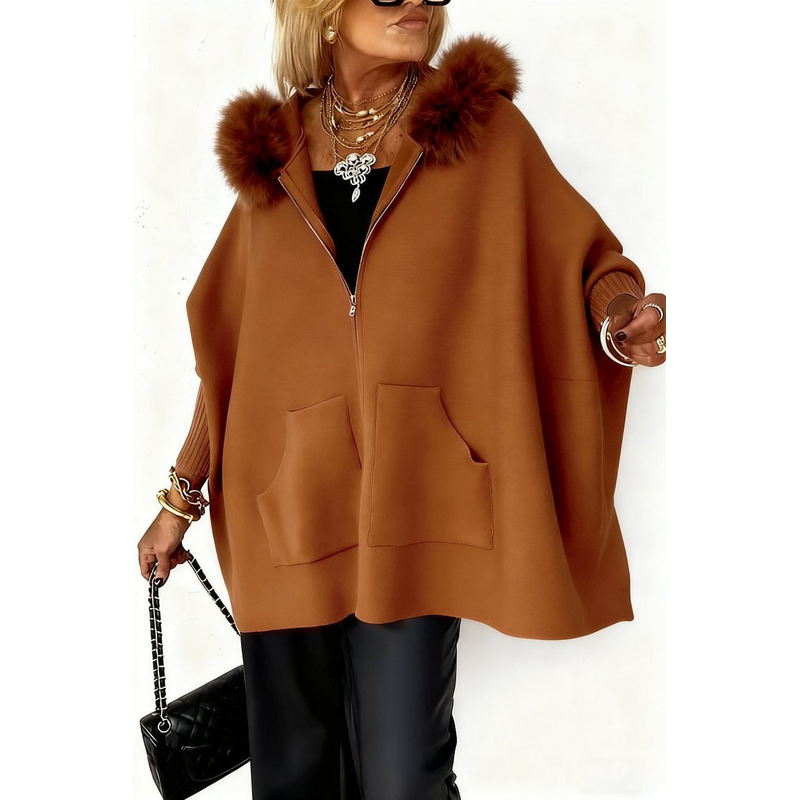 Ins Plush Hooded Cardigan Fashion Warm Pockets Zip-up Knitted Jacket Casual Outerwear Batwing Sleeve Sweater Women's Clothing Black XXXL