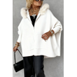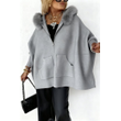 Ins Plush Hooded Cardigan Fashion Warm Pockets Zip-up Knitted Jacket Casual Outerwear Batwing Sleeve Sweater Women's Clothing Gray M