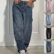 Ins Shiny Straight Jeans With Pockets Fashion Loose Wide-leg Pants For Women Street-style Trousers Light Blue 2XL