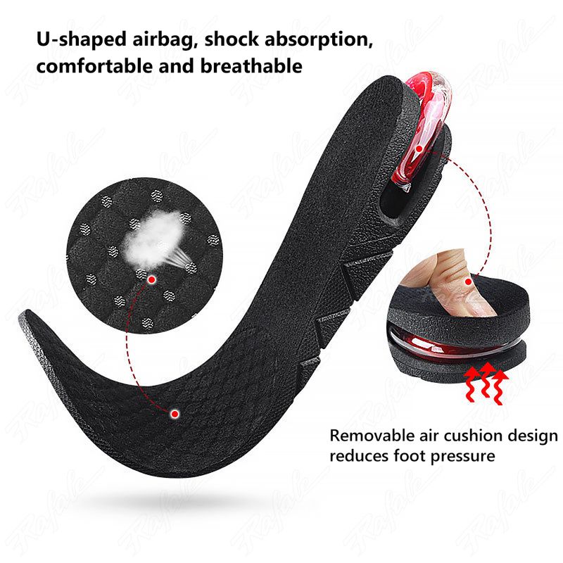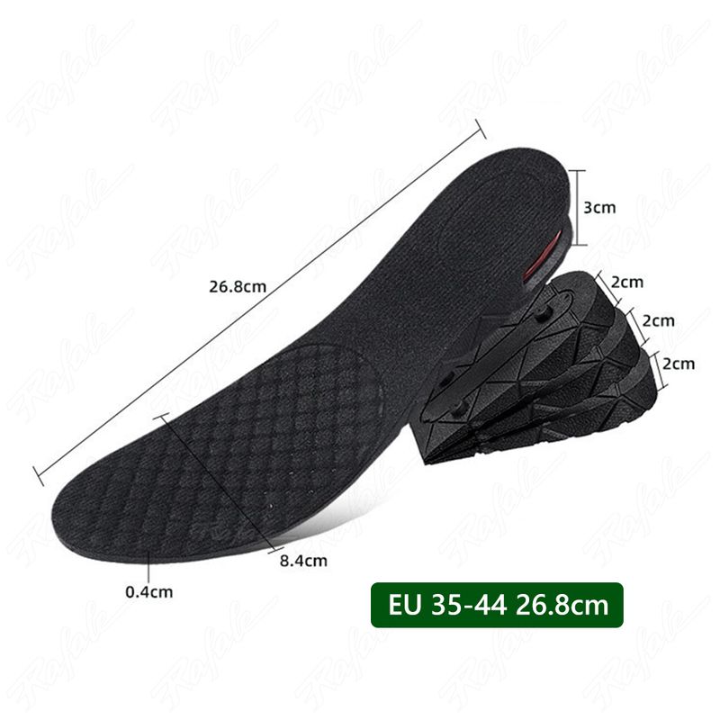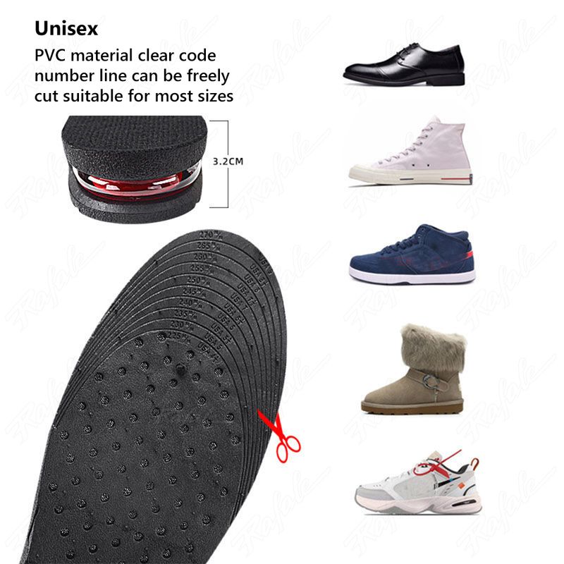 Increased Height: Add 3cm - 9cm heights. Be it your sports shoes, formal or casual shoes, you can insert these in almost all types and look remarkably taller. The best part is, these elevator shoes insoles remain concealed, such that no one ever knows the secret behind your increased height.