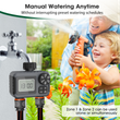 【Rainy Delay Mode】 Our hose timer's Rainy Delay mode is a water-saver. Press and hold the "+" button for 3-5 seconds to pause the schedule for 1 - 7 days without disrupting your set program. No rain sensor? No problem. Just base it on the local weather forecast. This prevents overwatering on rainy days, saving you a significant amount of water. With automatic, manual, and rainy delay modes, all your watering needs are covered. It's an intelligent way to manage your watering, whether you're in a rainy or dry climate, and helps you be more environmentally conscious while maintaining a beautiful yard or lawn