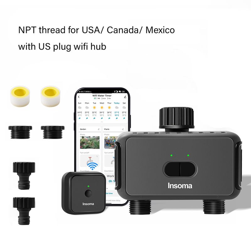 Insoma Automatic Water Timer with Gateway Dual Hose Garden Irrigation Watering System Remote Sprinkler Programmer support Alexa