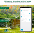 【2 Watering Schedule Setting Modes】: Under timed watering mode, you can set a timed watering schedule to let the hose timer run on its own and water at a specific time. Under the cyclical watering mode, the hose faucet water timer will cycle watering within the preset start and end times automatically. When the irrigation duration, interval time, start and end times are set, the smart irrigation timer is ready to take over the control of the lawn and garden.