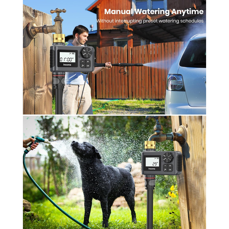 INSOMA Automatic Water Timer Intelligent Irrigation Watering System LCD Display IPX5 Sprinkler Timer Garden Programmer Equipment