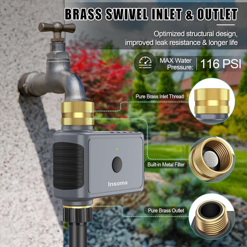 Insoma Wifi Automatic Sprinkle Timer with Brass Swivel Garden Water Timer Smart Irrigation Watering System Hose Control Tools