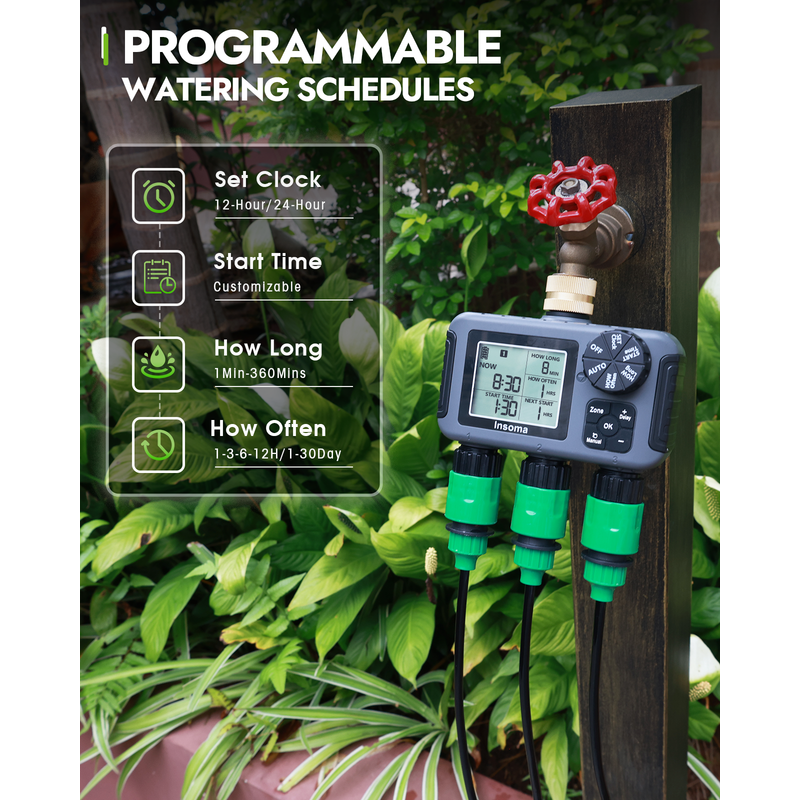 6. To prevent leakage, make sure that the water timer is tightly attached to the faucet and hose, add rubber washer and thread seal tape if necessary.