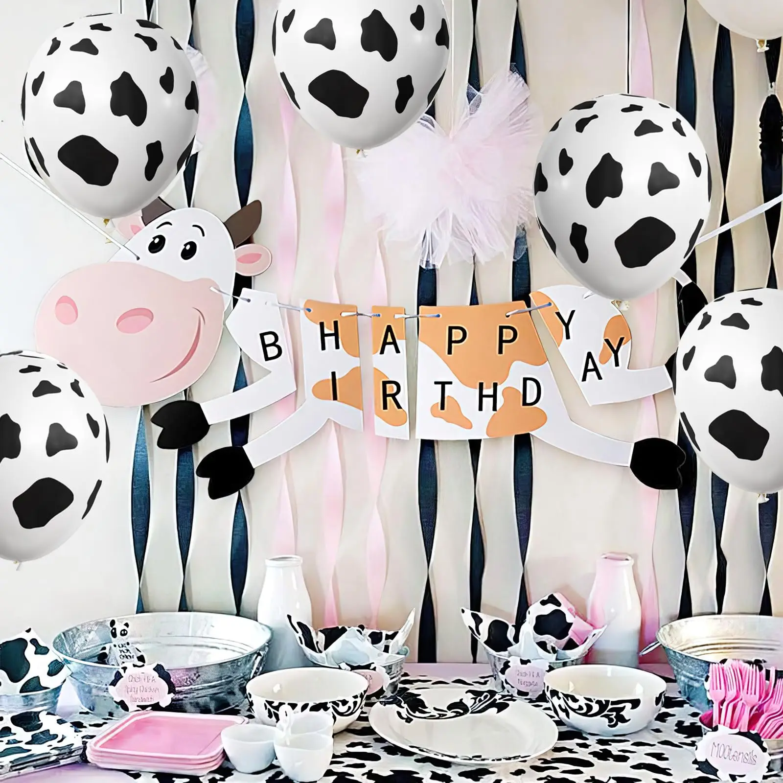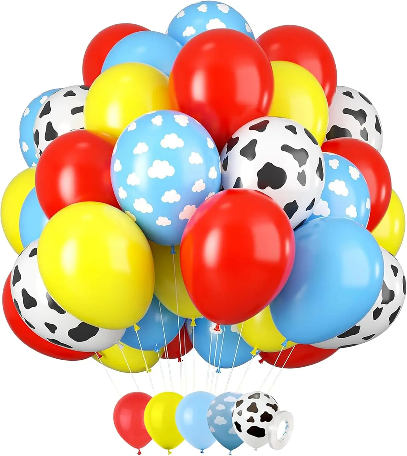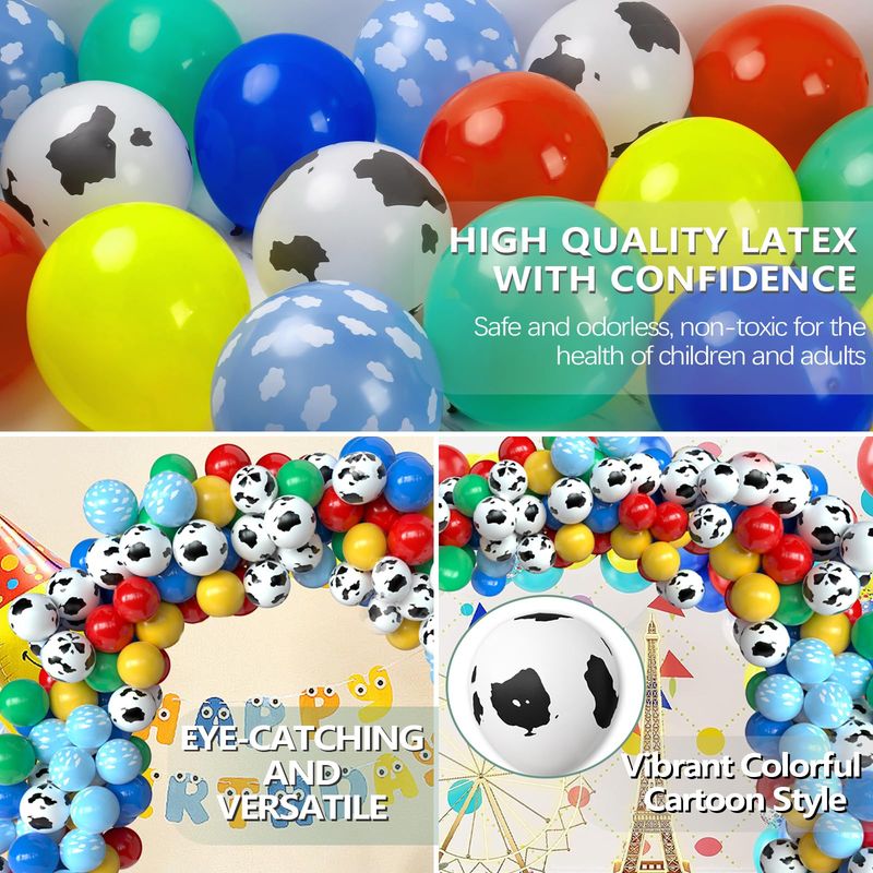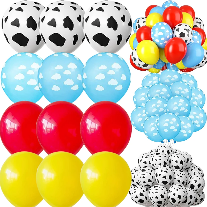Inspired Story Balloons Decoration Cow Pattern Blue Sky and White Cloud Latex Balloons for Kids Birthday Party Supplies Favors