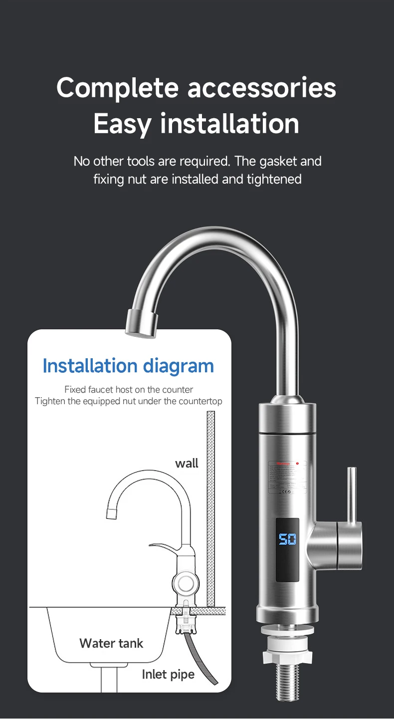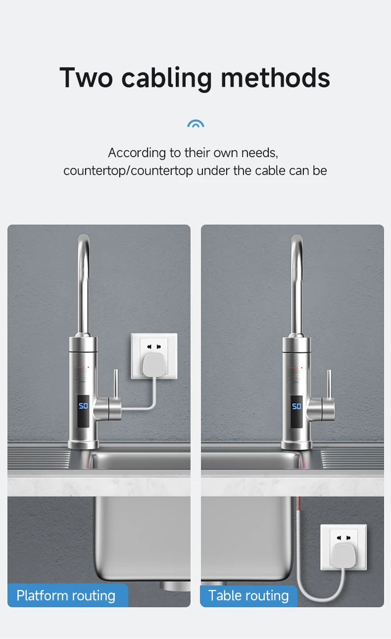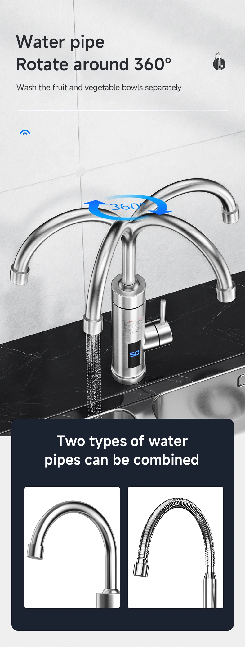 • Tankless Water Heater :No need for a bulky water tank, this faucet provides instant hot water on demand.