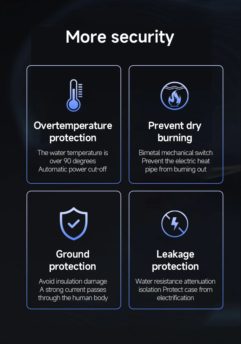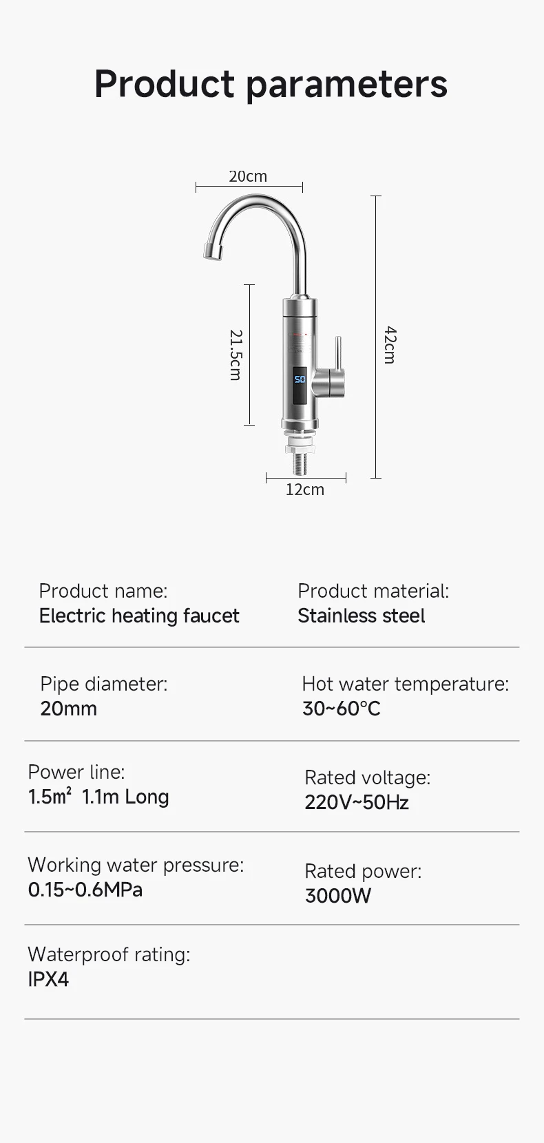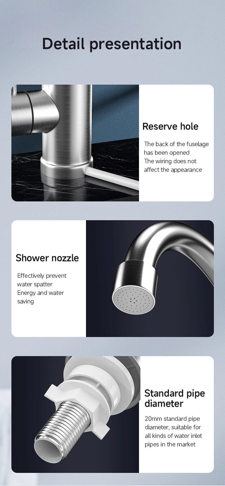 • Tankless Water Heater :No need for a bulky water tank, this faucet provides instant hot water on demand.