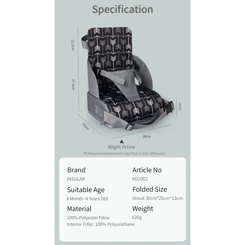 INSULAR Portable Foldable Anti slip Children's Seat High Cushion Baby Dining Chair High Cushion Children's Travel Supplies