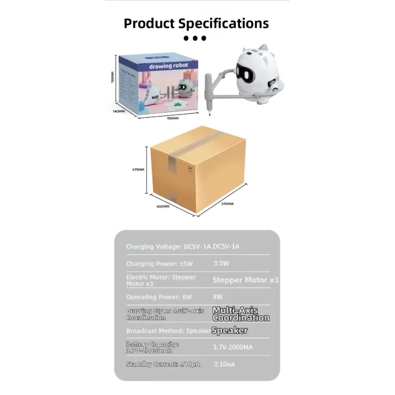 *Compact and Portable Design: Made from ABS material, this lightweight drawing robot is easy to set-up and transport, making it suitable for-home use or educational settings.