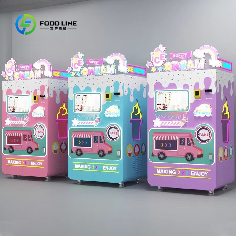 Food machines such as dining carts, pizza machines, cotton candy machines, ice cream machines, popcorn machines, vending machines, etc.