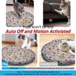 Auto on/off and Motion Activated:Power on the automatic cats toys work 5 minutes then entry the standy status, it will be reactivated by being pat .If there in no touch during standby time,it will automatically reactivate for 60s every 1hr to attract cats' attention.