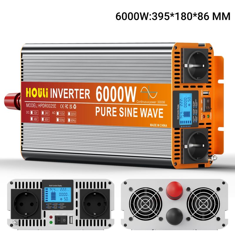 ★[Pure Sine Wave Inverter]: Pure sine wave inverter provides true 1500W/2000W/2500W/3000W/3500W continuous power and 3000W/4000W/5000W/6000W/7000W peak power. Pure sine wave inverters produce cleaner, smoother, more reliable electricity.