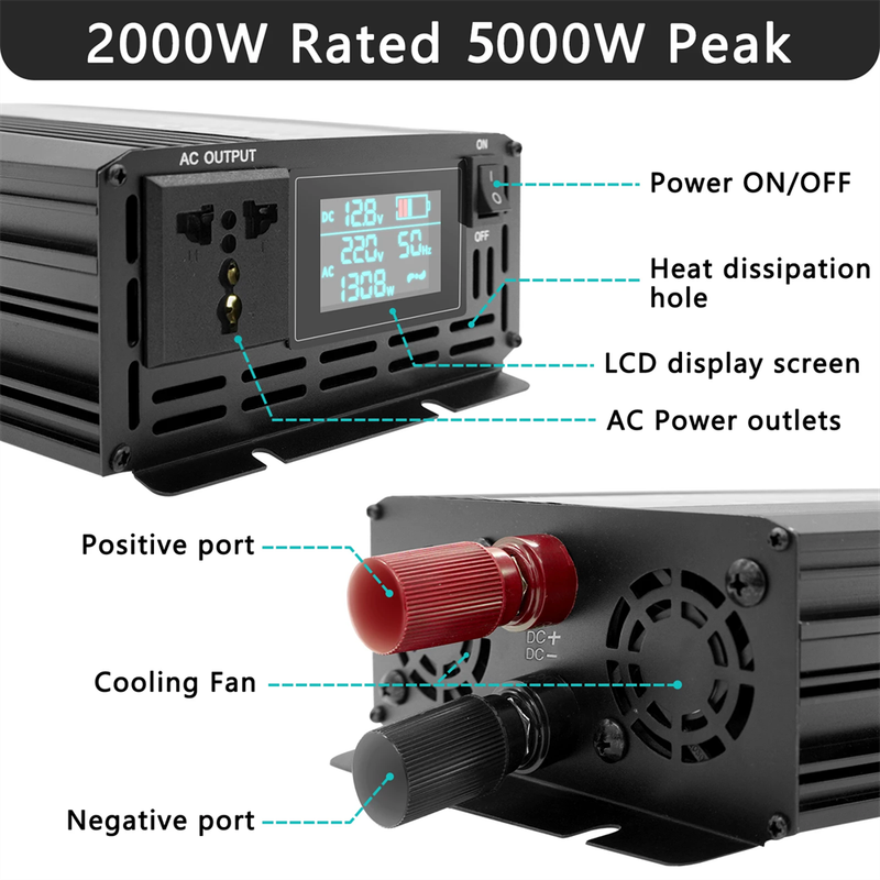 2: Pure sine wave, intelligent filtering, no interference with electrical appliances, protect electrical appliances. High conversion efficiency (up to 95%).