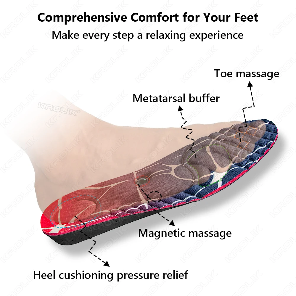 Super elasticity and shock absorbent for all day comfort.