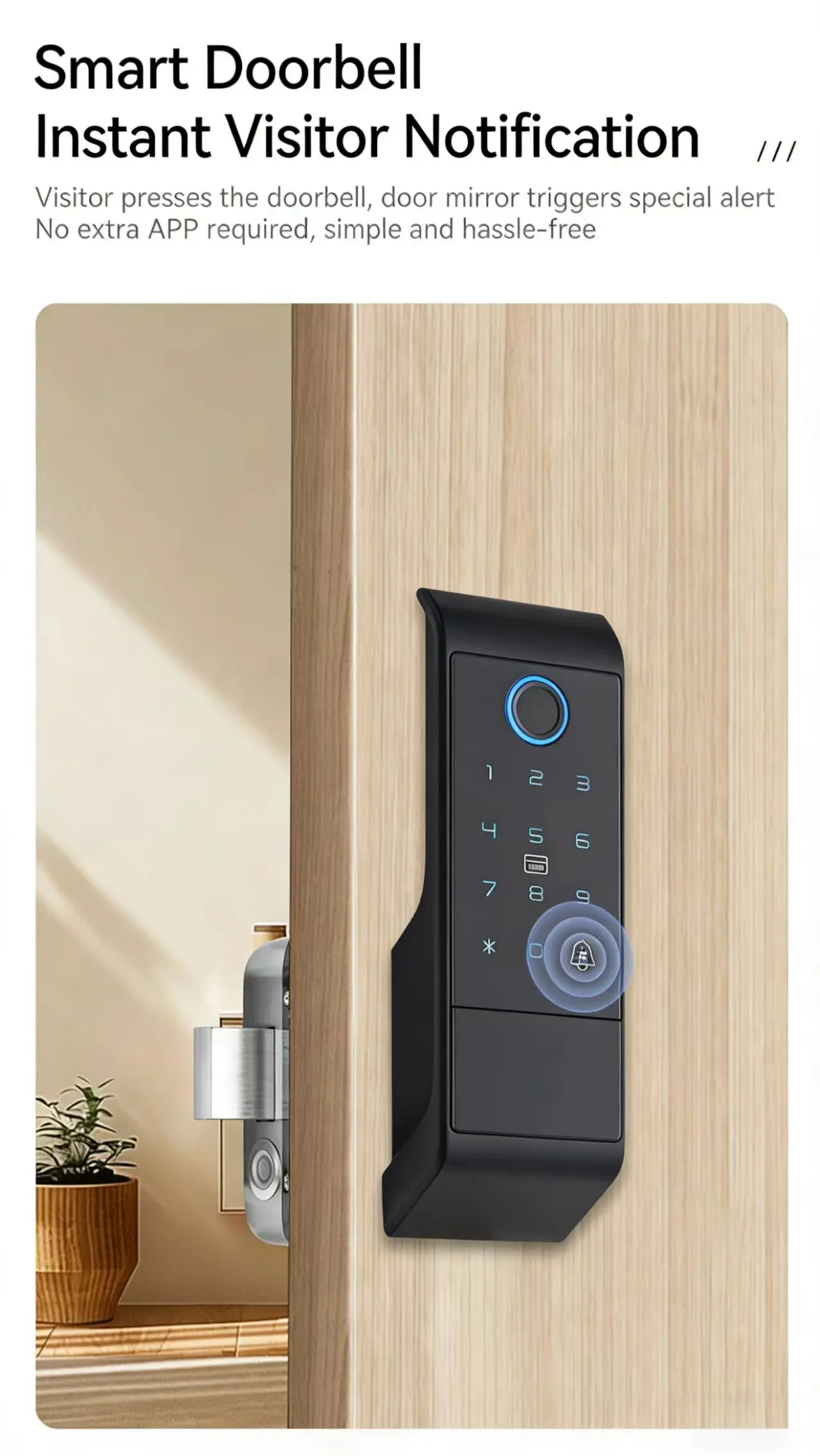 Multiple unlocking methods: fingerprint recognition and touch screen password, rfid card, mobile app, no need to carry keys.