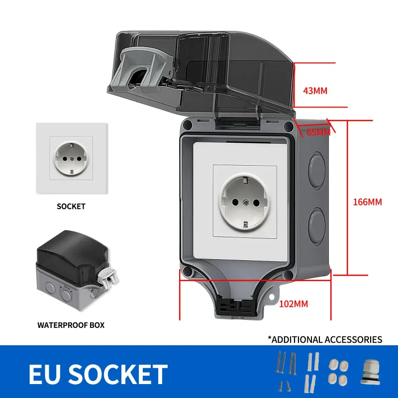 IP66 Outdoor Socket 220V EU Sockets with Switch Waterproof Double Plug for Garden Courtyard Use Waterproof Socket Box