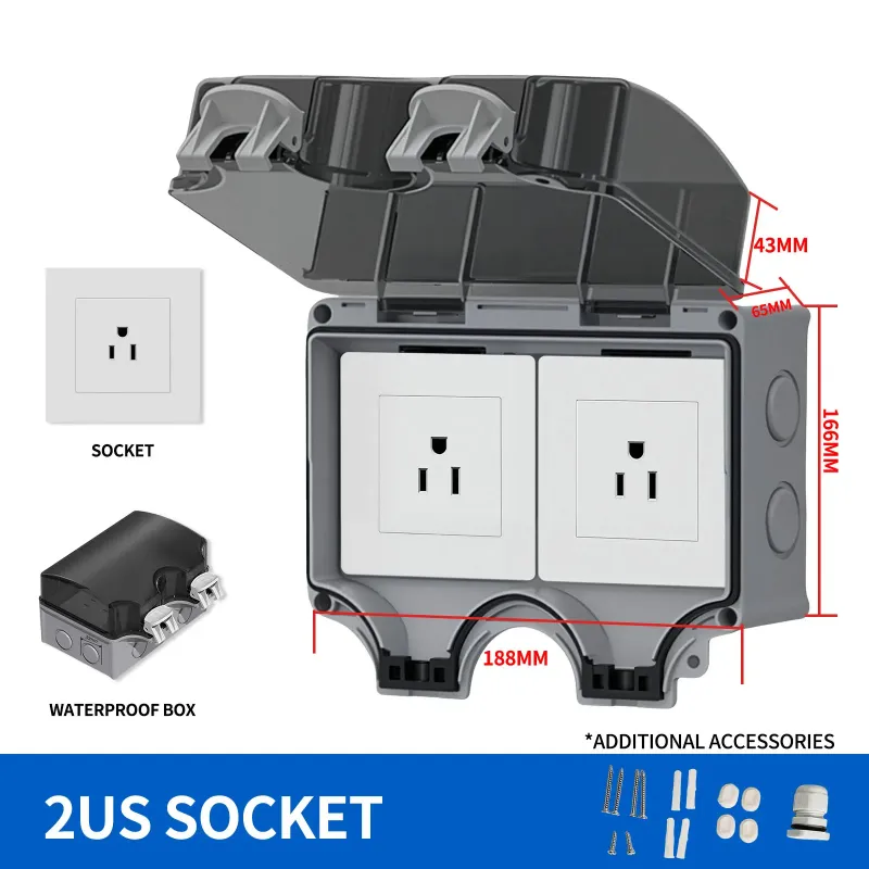 IP66 Outdoor Socket 220V EU Sockets with Switch Waterproof Double Plug for Garden Courtyard Use Waterproof Socket Box
