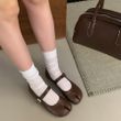 IPPEUM Brown Tabis Ballet Flats Women New Fashion Buckle Split Toe Mary Janes Shoes