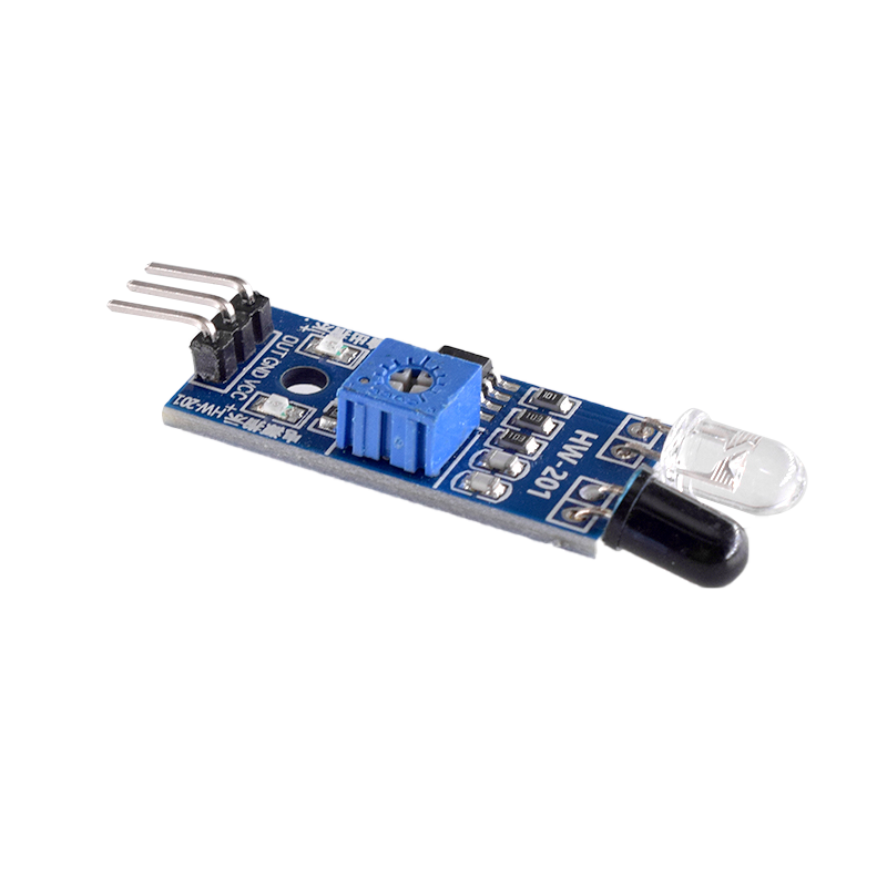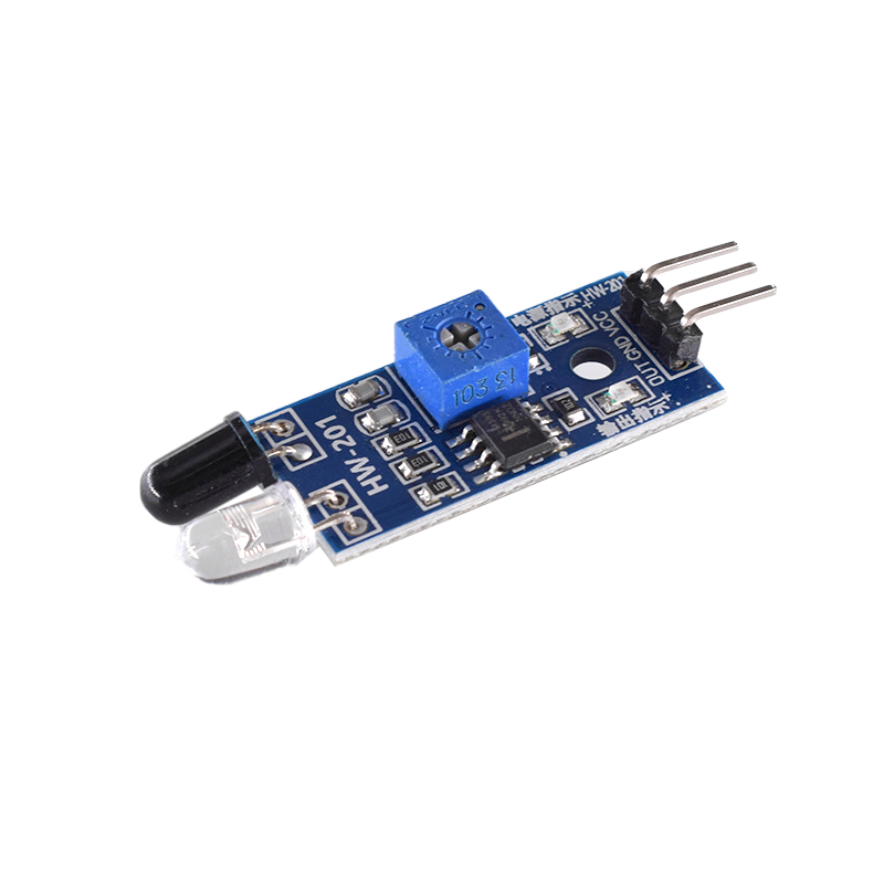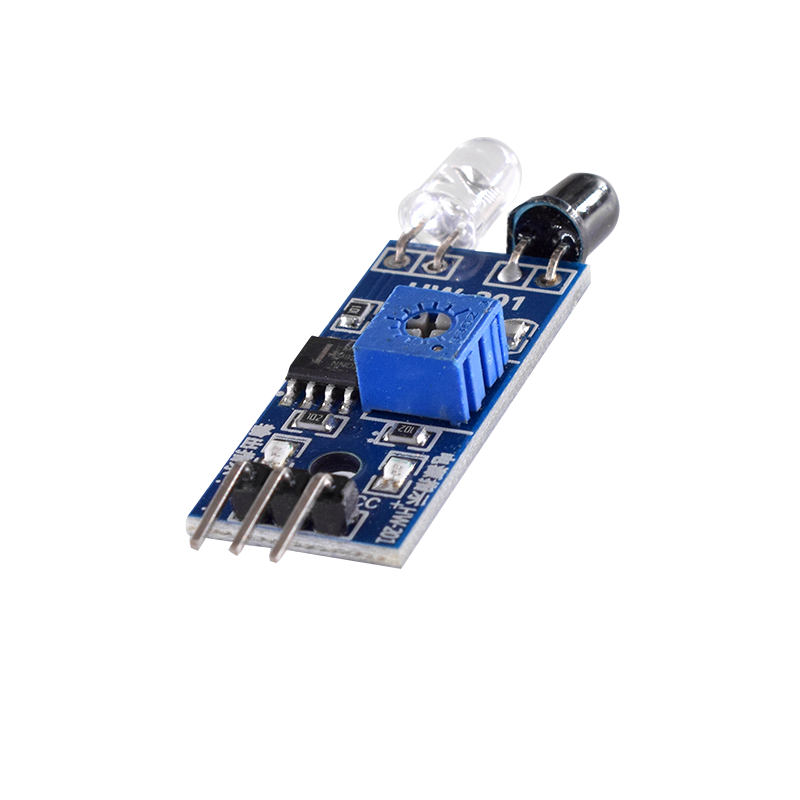 This sensor module has strong adaptability to environmental light and has a pair of infrared emission and reception tubes. The emission tube emits infrared radiation at a certain frequency. When the detection direction encounters an obstacle (reflection surface), the infrared radiation is reflected back and received by the reception tube. After being processed by the comparator circuit, the red indicator light will light up, and the signal output interface will output a digital signal (a low-level signal). The detection distance can be adjusted through a potentiometer knob, with an effective distance range of 2-30cm. It can be widely used in many situations such as robot obstacle avoidance, obstacle avoidance vehicles, assembly line counting, and black and white line tracking.